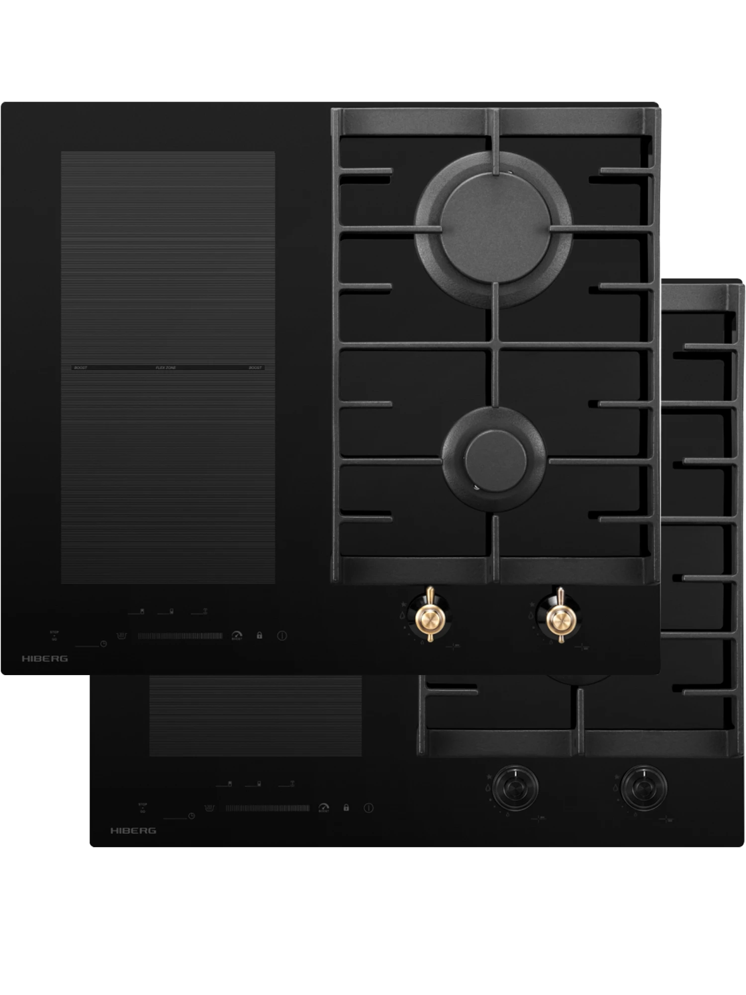 Комбинированная варочная поверхность HIBERG i-VM 6021 B выполнена из стеклокерамики черного цвета и оснащена 2 газовыми конфорками и 2 индукционными с возможностью объединения зон. Материал рабочей поверхности – стеклокерамика, которая не только имеет красивый зеркальный вид, но и обеспечивает устойчивость к воздействию высоких температур, легка в уходе и способна выдержать тяжелую посуду. Главная особенность модели – индукционные конфорки, которые благодаря функции Flex Zone могут объединяться в одну. Максимальная мощность объединенной зоны 2,8 кВт. В варочной панели имеется функция автораспознавания посуды. Система определит тип посуды и включится, если поставить на конфорку посуду, подходящую для индукционных плит. Каждая конфорка имеет 9 уровней мощности, которая регулируется с помощью удобного слайдерного управления. С функцией Power Boost можно за короткое время увеличить подачу мощности на одну конфорку, что позволит всего за 5 минут вскипятить воду или молоко. В данной модели предусмотрен индивидуальный таймер отключения подачи электроэнергии для каждой конфорки и таймер отключения сразу для всей индукционной зоны. Не придется долго стоять у плиты в ожидании, пока на медленном огне приготовится какое-то блюдо, можно выставить таймер, который автоматически отключит конфорку через заданное время: от 1 до 99 минут. В случае повышения температуры выше заданной отметки варочная панель автоматически отключается. Кроме того, автоматическое выключение конфорки сработает, если время приготовления превышает заданный лимит времени или при проливании жидкости. Блокировку панели управления можно активировать в качестве безопасности детей. Электрическая поверхность имеет индикатор остаточного тепла для индукции, что позволяет поддерживать температуру только приготовленного блюда. Основное преимущество для газовых конфорок – функция автоматический «электророзжиг» от ручки. За безопасность подачи газа отвечает система «Газ-контроль», которая обезопасит пользователя от вероятности воспламенения при утечке газа. Поверх газовых конфорок установлена массивная и прочная чугунная решетка, она устойчива и удобна в очистке. На гладкую и ровную поверхность решетки можно поставить посуду любой формы и веса. Мощность газовых горелок можно регулировать с помощью металлических поворотных переключателей, которые находятся на фронтальной панели управления. Варочная поверхность подойдет под дизайн любой кухни, благодаря 2-м наборам ручек в комплекте: в ретро стиле и современные. Особенности и преимущества: 2 газовые конфорки; 2 индукционные конфорки с функцией Flex Zone; стеклокерамика; электророзжиг; газ-контроль; чугунная решетка; 2 комплекта ручек для газовых конфорок; сенсорное слайдерное управление; таймер; защита от перегрева; цвет: черный. Варочная поверхность HIBERG подключается к розетке через кабель с вилкой (идет в комплекте). Газовый выход расположен в правом углу. Тип подключения - штуцер (внешняя резьба). Варочные поверхности от HIBERG - это премиальное качество, комфорт эксплуатации и высокая безопасность!