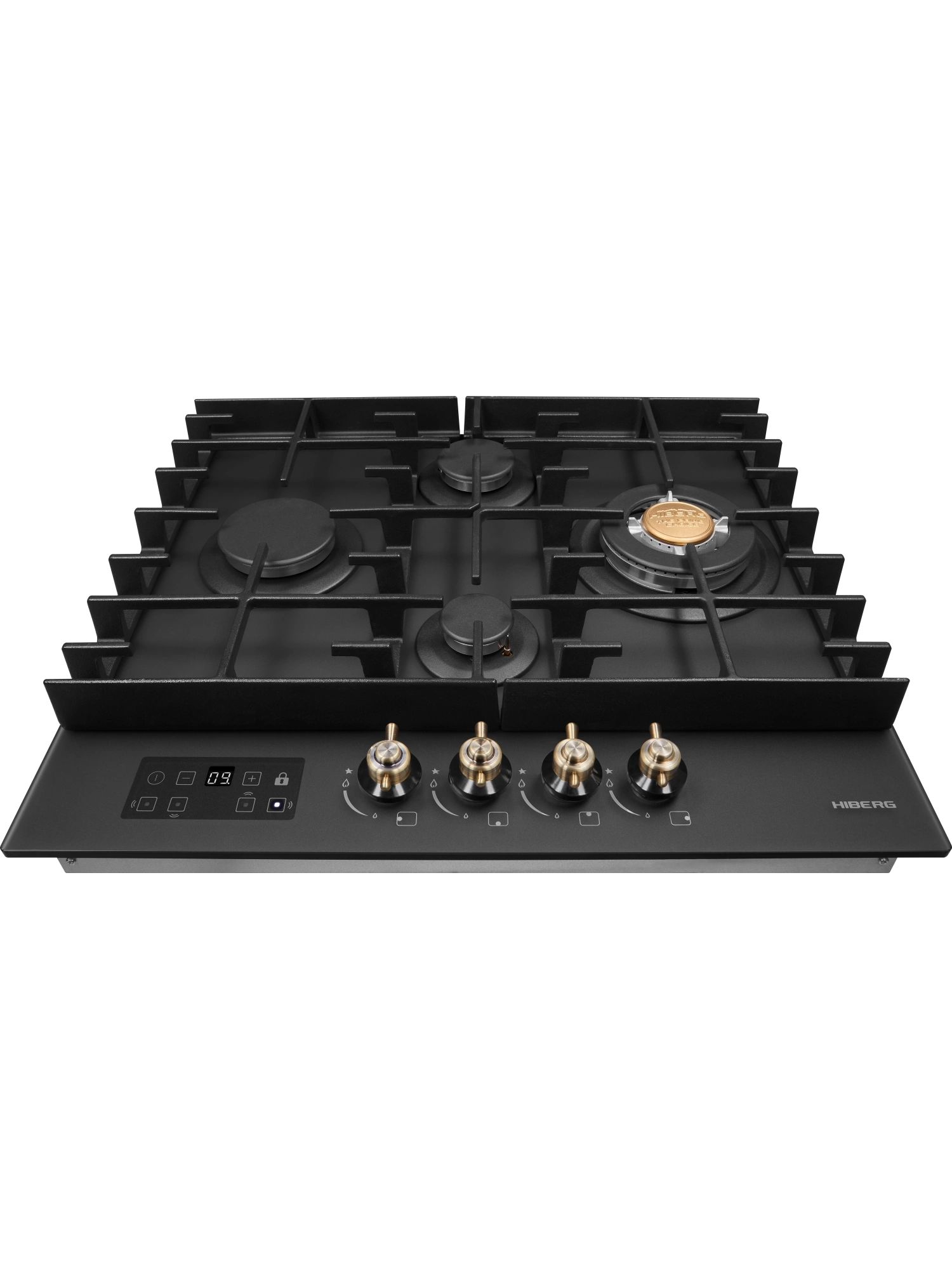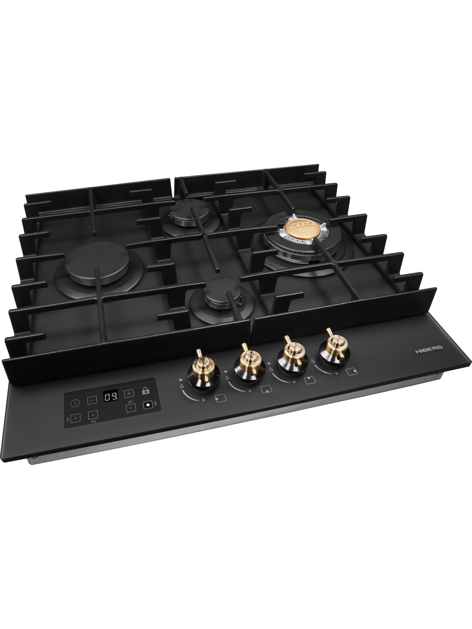 Газовая варочная поверхность HIBERG VM 6245 B оснащена четырьмя газовыми конфорками с функциями автоматического электророзжига и газ-контроля. Поверхность из закалённого матового стекла с технологией покрытия NANO MATT — уникальное решение для создания эстетичного и технологичного пространства на вашей кухне. NANO MATT — это новейшее высокотехнологичное олеофобное покрытие, отталкивающее воду и жир. На чёрном матовом стекле не остаются отпечатки пальцев, оно отлично выдерживает температурные и перепады и механические воздействия. Индивидуальный сенсорный таймер отключения газа даёт возможность контролировать время готовки каждого блюда. Таймер устанавливается с диапазоном от 1 до 99 минут, по истечении заданного времени конфорка отключается автоматически. Четыре конфорки отличаются по диаметру и мощности. WOK — конфорка с тройным рядом пламени и мощностью 3,4 кВт — позволяет быстро вскипятить воду, жарить мясо на большом огне, а также готовить блюда восточной кухни. Поверх конфорок на варочной панели установлены прочные чугунные решётки. Они имеют специальную форму, которая снижает нагрузку на стеклянное покрытие. Такие держатели удобны в использовании и уходе, не подвержены воздействию высоких температур и отличаются длительным сроком службы. Мощность любой горелки можно регулировать с помощью поворотных переключателей. Для удобства пользования варочной панелью в переключатели встроен электророзжиг, который позволит одним нажатием руки легко включить нужную конфорку без использования спичек. Эффективная система безопасности «Газ-контроль»контролирует подачу газа. В случае пролива жидкости на варочную панель или затухания пламени от сквозняка подача газа автоматически прекращается. Варочная поверхность HIBERG подключается к розетке через кабель с вилкой (идет в комплекте). Газовый выход расположен в правом углу. Тип подключения - штуцер (внешняя резьба). Гарантия на варочную поверхность HIBERG — 2 года.