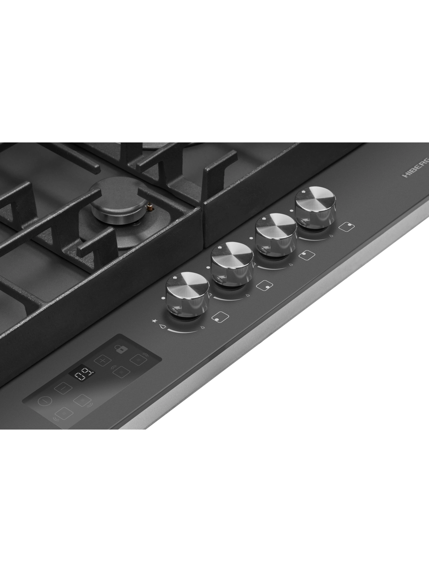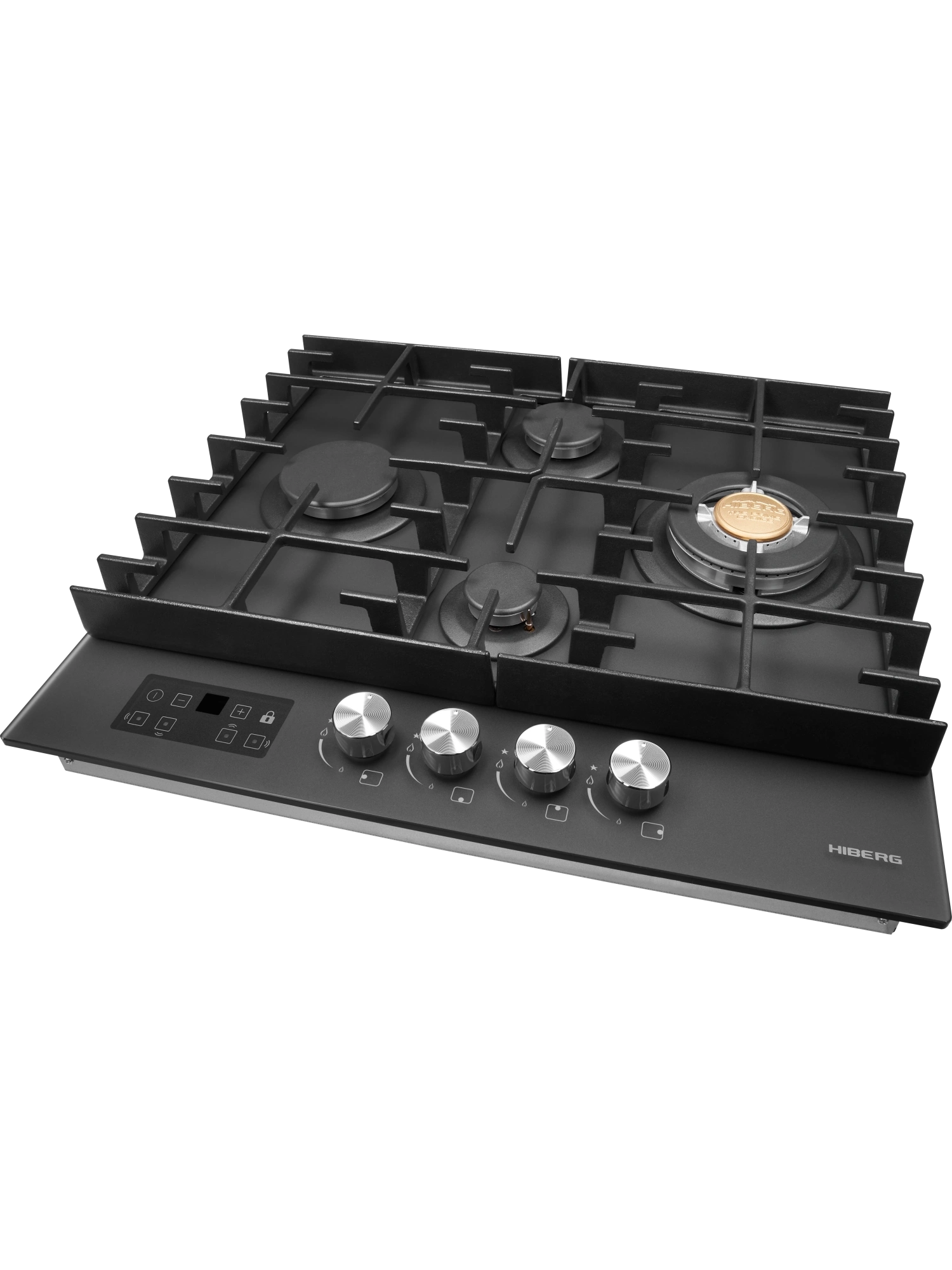 Газовая варочная поверхность HIBERG VM 6245 Gr оснащена четырьмя газовыми конфорками с функциями автоматического электророзжига и газ-контроля. Поверхность из закалённого матового стекла с технологией покрытия NANO MATT — уникальное решение для создания эстетичного и технологичного пространства на вашей кухне. NANO MATT — это новейшее высокотехнологичное олеофобное покрытие, отталкивающее воду и жир. На сером матовом стекле не остаются отпечатки пальцев, оно отлично выдерживает температурные и перепады и механические воздействия. Индивидуальный сенсорный таймер отключения газа даёт возможность контролировать время готовки каждого блюда. Таймер устанавливается с диапазоном от 1 до 99 минут, по истечении заданного времени конфорка отключается автоматически. Четыре конфорки отличаются по диаметру и мощности. WOK — конфорка с тройным рядом пламени и мощностью 3,4 кВт — позволяет быстро вскипятить воду, жарить мясо на большом огне, а также готовить блюда восточной кухни. Поверх конфорок на варочной панели установлены прочные чугунные решётки. Они имеют специальную форму, которая снижает нагрузку на стеклянное покрытие. Такие держатели удобны в использовании и уходе, не подвержены воздействию высоких температур и отличаются длительным сроком службы. Мощность любой горелки можно регулировать с помощью поворотных переключателей. Для удобства пользования варочной панелью в переключатели встроен электророзжиг, который позволит одним нажатием руки легко включить нужную конфорку без использования спичек. Эффективная система безопасности «Газ-контроль»контролирует подачу газа. В случае пролива жидкости на варочную панель или затухания пламени от сквозняка подача газа автоматически прекращается. Варочная поверхность HIBERG подключается к розетке через кабель с вилкой (идет в комплекте). Газовый выход расположен в правом углу. Тип подключения - штуцер (внешняя резьба). Гарантия на варочную поверхность HIBERG — 2 года.