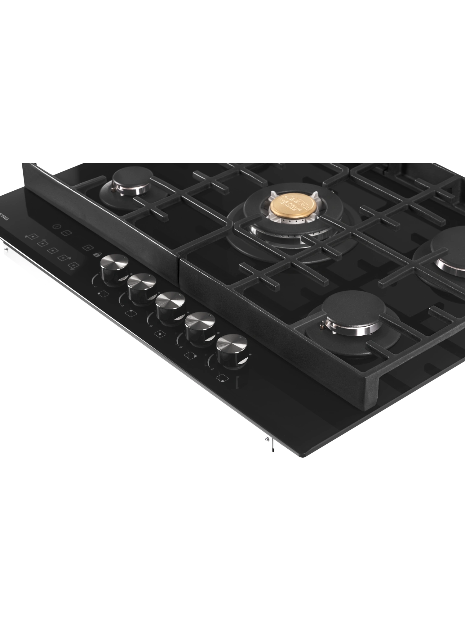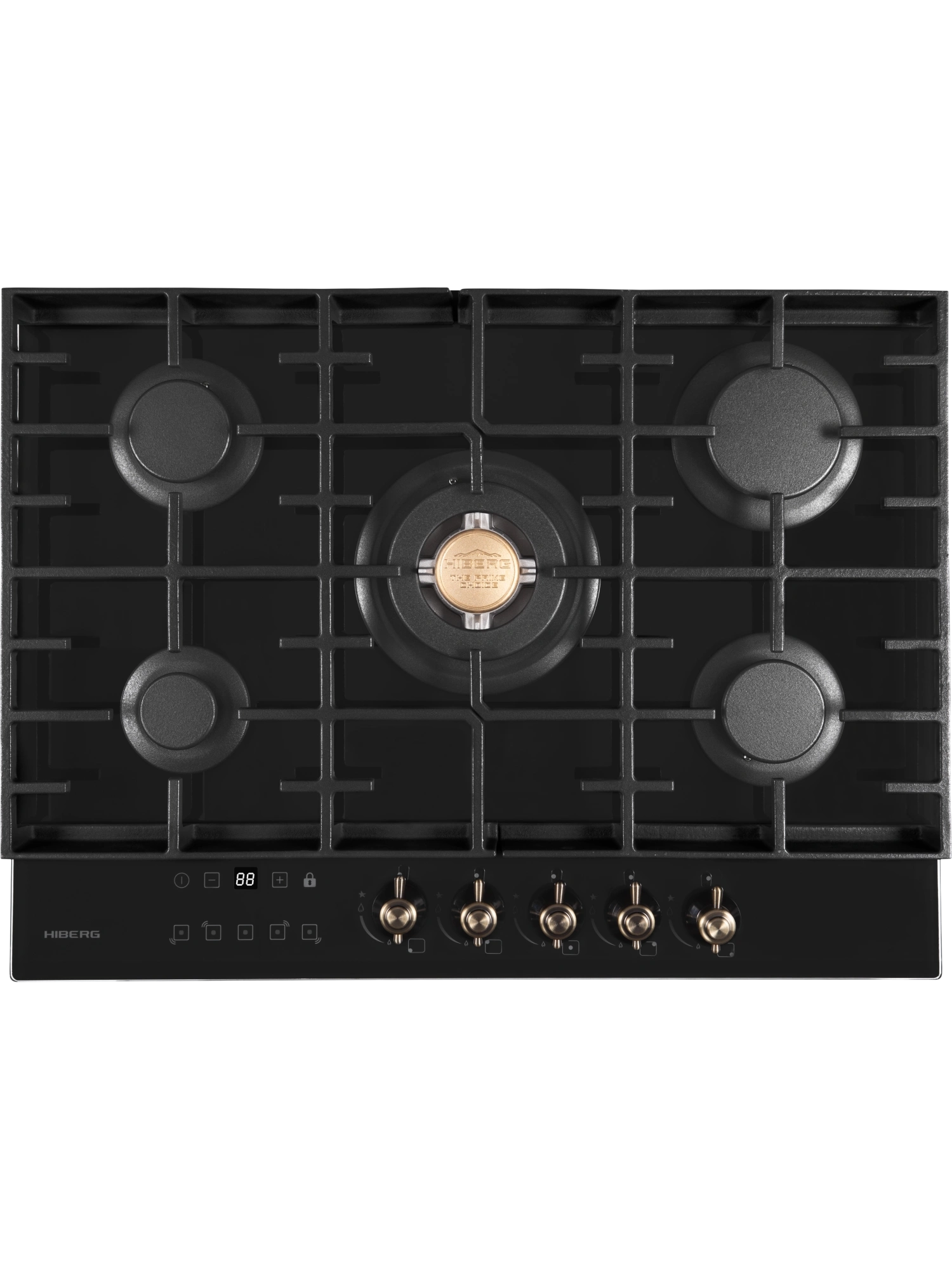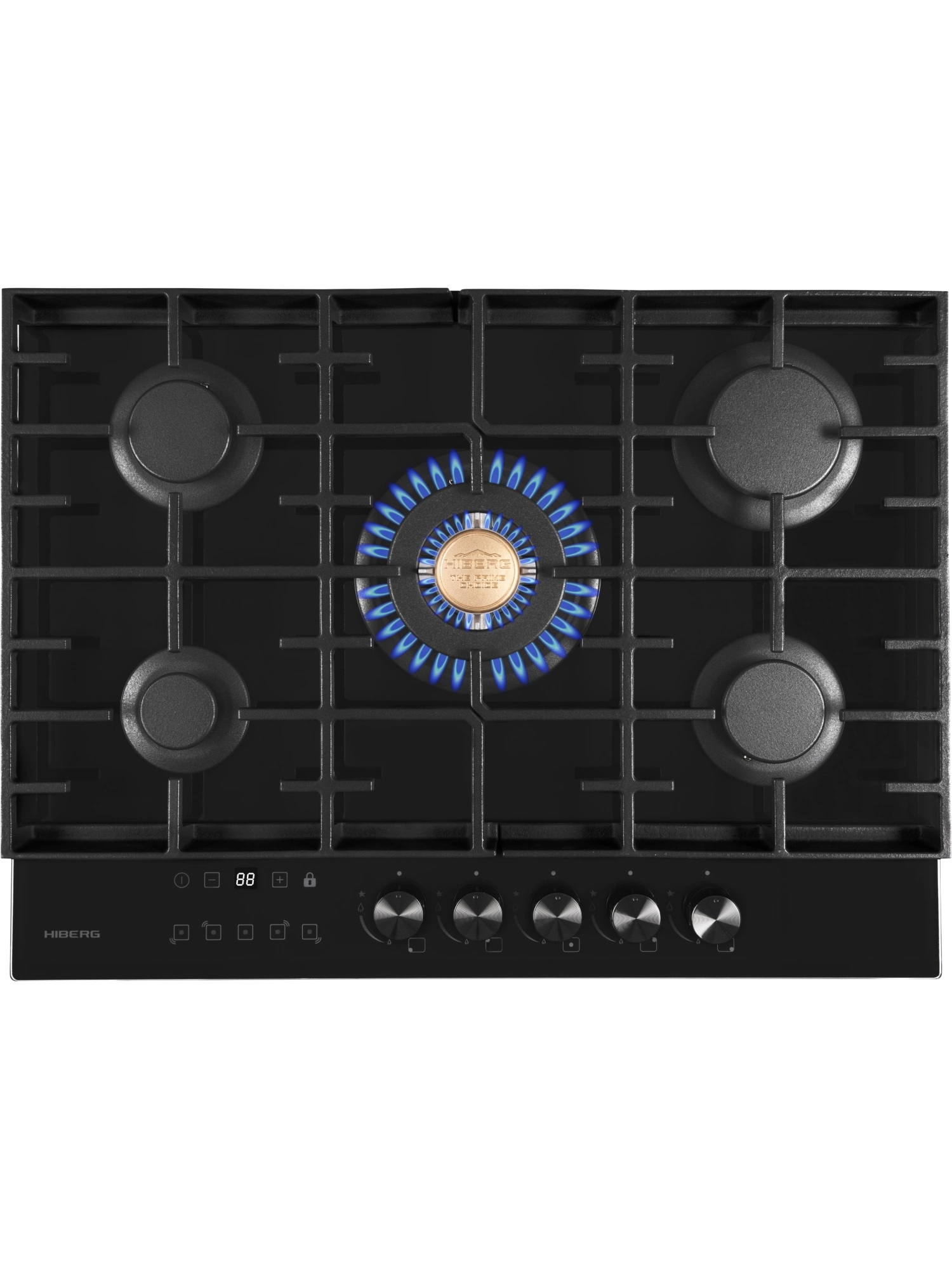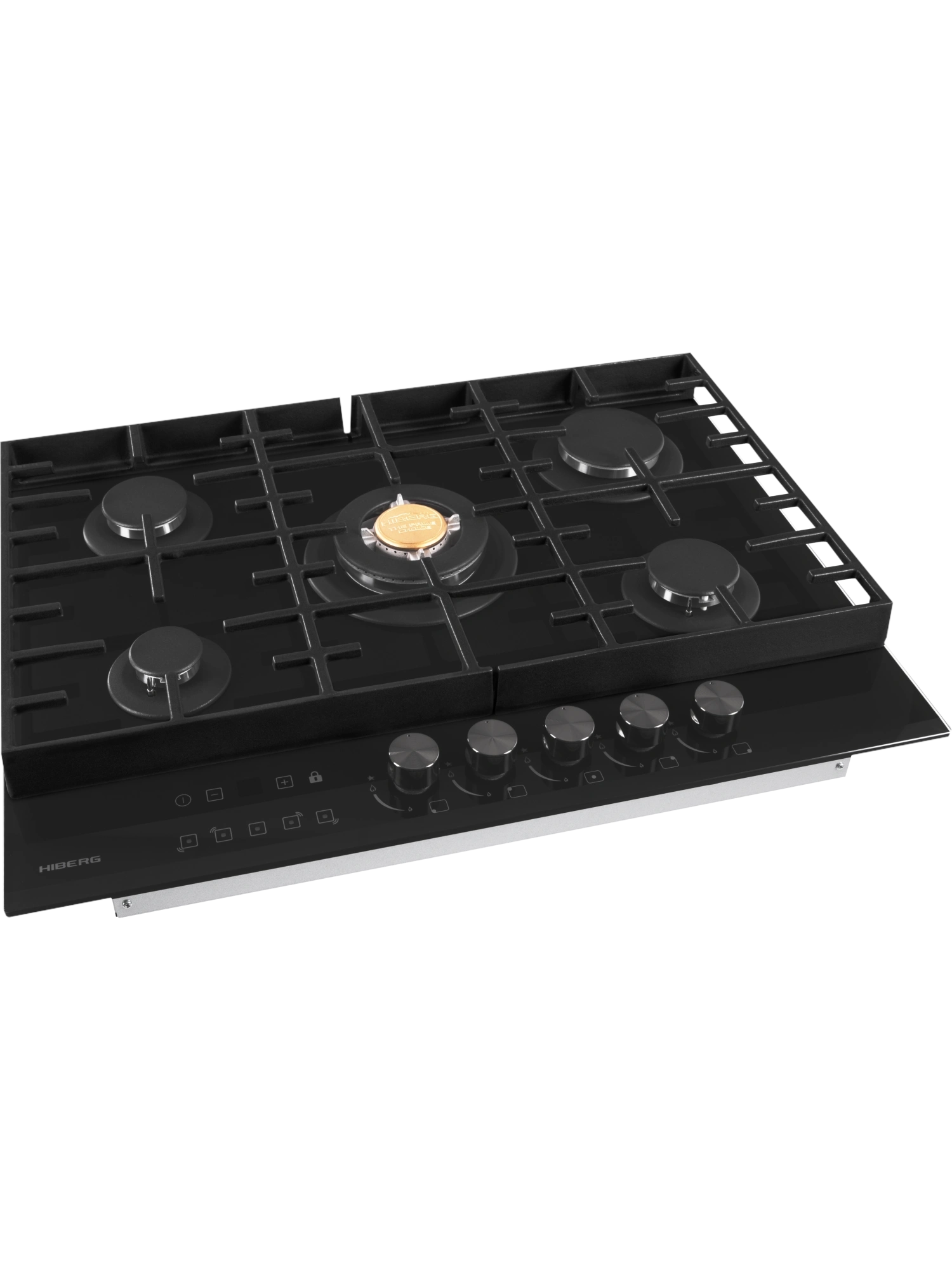 Встраиваемая газовая варочная поверхность HIBERG VM 7155 B из закаленного стекла в черном цвете, оснащена 5 конфорками и функциями: автоматический «электророзжиг», «газ-контроль» и сенсорный таймер отключения газа. В комплект варочной поверхности входит дополнительный комплект ручек регуляторов в ретро-стиле. Рабочая поверхность выполнена из закаленного стекла – прочного и долговечного материала, на ней располагаются 5 конфорок разных по диаметру и мощности огня. WOK конфорка мощностью 3,4 кВт позволяет ускорить закипание воды и использовать интенсивную скорость прожарки. Сенсорный индивидуальный таймер отключения газа дает возможность контролировать время готовки каждого блюда. Каждая конфорка будет отключаться именно в то время, которое было задано именно для нее. Таймер устанавливается с диапазоном от 1 до 99 минут, по истечении заданного времени конфорка отключается автоматически. Мощность любой горелки можно регулировать с помощью поворотных переключателей. Для удобства пользования варочной панелью в переключатели встроен «электророзжиг», который позволит одним нажатием руки легко включить нужную конфорку без использования спичек. В варочной поверхности эффективно продумана система безопасности при утечке газа. В случае пролива жидкости на варочную панель или затухания пламени от сквозняка, в конфорке срабатывает функция газ-контроль и подача газа прекращается. Поверх конфорок установлены чугунные решетки новой конструкции: соприкасаясь со стеклянной панелью только спереди и сзади, обеспечивают меньшую нагрузку на стекло и не оставляют царапин. Прочные чугунные решетки удобные в уходе, не подвержены воздействию высоких температур и отличаются длительным сроком службы. Особенности и преимущества: поверхность из закаленного стекла; электророзжиг; газ-контроль; сенсорный таймер; WOK конфорка; улучшенные чугунные решетки; 2 комплекта ручек: в ретро-стиле и современном; цвет: черный. Варочная поверхность HIBERG подключается к розетке через кабель с вилкой (идет в комплекте). Газовый выход расположен в правом углу. Тип подключения - штуцер (внешняя резьба). Гарантия на варочную поверхность HIBERG – 2 года.