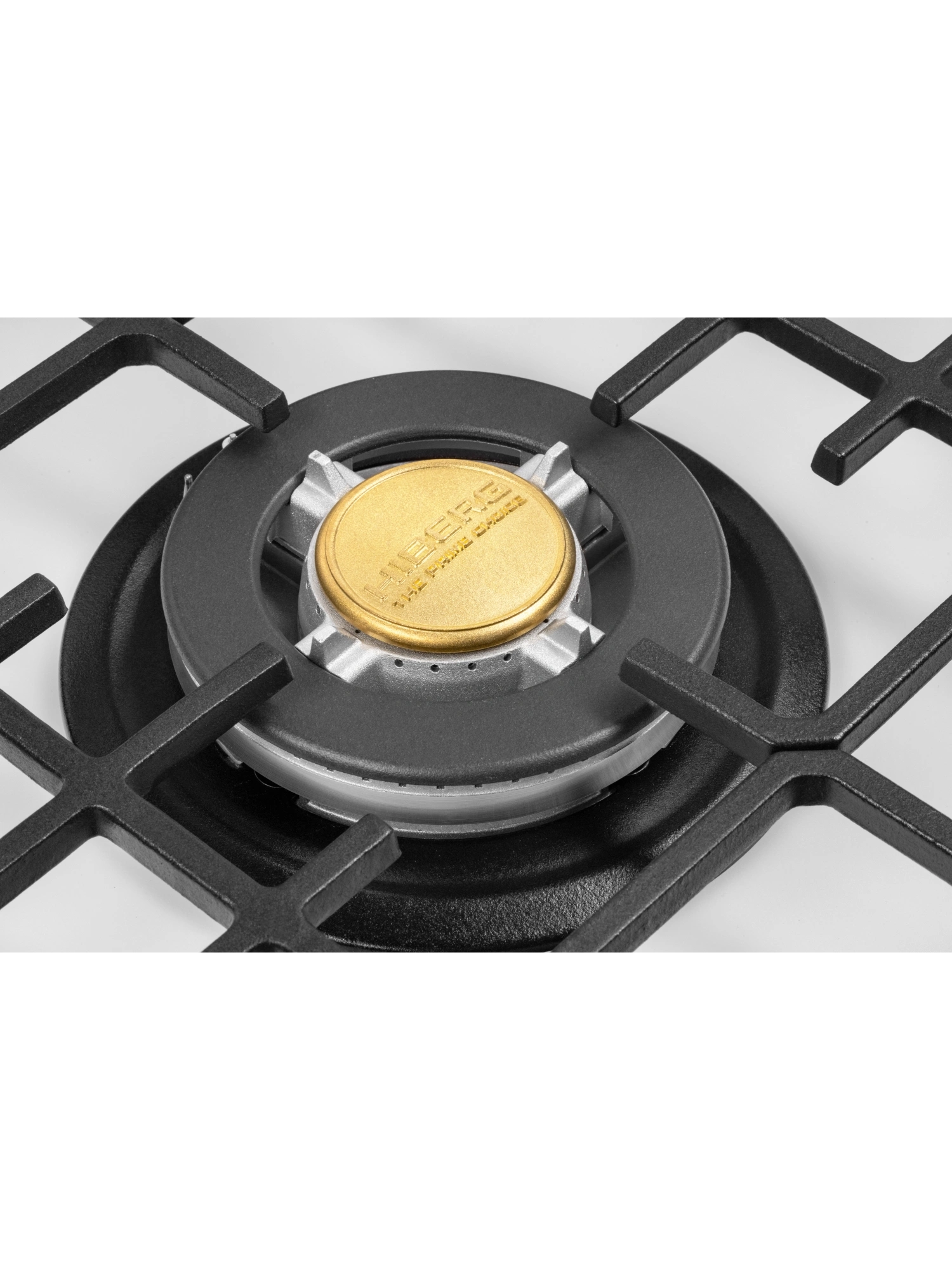 Газовая варочная поверхность HIBERG VM 7255 W – функциональный и элегантный выбор для современной кухни. Модель шириной 68,4 см и глубиной 51 см оборудована 5 газовыми конфорками с функциями автоматического электророзжига и газ-контроля. Варочная панель HIBERG VM 7255 W – отличное решение для большой семьи. Закаленное матовое стекло NANO MATT – новейшее высокотехнологичное олеофобное покрытие. Поверхность отталкивает воду и жир, облегчая процесс ухода за техникой и сохраняя чистоту рабочего пространства вокруг плиты. На белом матовом стекле варочной панели не остаются отпечатки пальцев. Прочная поверхность с повышенной устойчивостью к царапинам и сколам выдерживает температурные перепады и механические воздействия, а процесс приготовления блюд остается для хозяек в удовольствие. С помощью сенсорного таймера отключения газа можно контролировать время приготовления на нескольких конфорках сразу. Настройки устанавливаются с диапазоном от 1 до 99 минут. По истечении заданного времени конфорка отключается автоматически. При необходимости таймер можно выключить досрочно. Пять конфорок газовой варочной панели отличаются диаметром и мощностью. Дополнительная горелка позволяет готовить еще больше блюд одновременно. Самая большая конфорка – WOK с тройным рядом пламени и мощностью 3,4 кВт. Усиленный жар способен быстро нагреть толстостенную глубокую посуду с небольшим диаметром дна для приготовления азиатской кухни. Также на ней можно быстро вскипятить воду, ускорить процесс жарки мясных и рыбных блюд до хрустящей корочки при добавлении небольшого количества жира. Функция электророзжига позволяет с легкостью включить конфорку одной рукой. Система газ-контроля автоматически отключает газ у задутой сквозняком или залитой водой горелки. Чугунная решетка с добавочными элементами уменьшает нагрузку на стеклянную поверхность и усиливает устойчивость тяжелой посуды на плите, облегчая ее перемещение. В комплекте – сменный набор металлических ручек Варочная поверхность HIBERG подключается к розетке через кабель с вилкой (идет в комплекте). Газовый выход расположен в правом углу. Тип подключения - штуцер (внешняя резьба). Гарантия на варочную панель HIBERG – 2 года.
