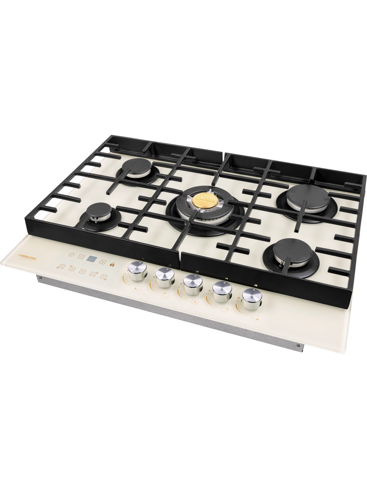 Газовая варочная поверхность HIBERG VM 7255 Y – функциональный и элегантный выбор для современной кухни. Модель шириной 68,4 см и глубиной 51 см оборудована 5 газовыми конфорками с функциями автоматического электророзжига и газ-контроля. Варочная панель HIBERG VM 7255 Y – отличное решение для большой семьи. Закаленное матовое стекло NANO MATT – новейшее высокотехнологичное олеофобное покрытие. Поверхность отталкивает воду и жир, облегчая процесс ухода за техникой и сохраняя чистоту рабочего пространства вокруг плиты. На бежевом матовом стекле варочной панели не остаются отпечатки пальцев. Прочная поверхность с повышенной устойчивостью к царапинам и сколам выдерживает температурные перепады и механические воздействия, а процесс приготовления блюд остается для хозяек в удовольствие. С помощью сенсорного таймера отключения газа можно контролировать время приготовления на нескольких конфорках сразу. Настройки устанавливаются с диапазоном от 1 до 99 минут. По истечении заданного времени конфорка отключается автоматически. При необходимости таймер можно выключить досрочно. Пять конфорок газовой варочной панели отличаются диаметром и мощностью. Дополнительная горелка позволяет готовить еще больше блюд одновременно. Самая большая конфорка – WOK с тройным рядом пламени и мощностью 3,4 кВт. Усиленный жар способен быстро нагреть толстостенную глубокую посуду с небольшим диаметром дна для приготовления азиатской кухни. Также на ней можно быстро вскипятить воду, ускорить процесс жарки мясных и рыбных блюд до хрустящей корочки при добавлении небольшого количества жира. Функция электророзжига позволяет с легкостью включить конфорку одной рукой. Система газ-контроля автоматически отключает газ у задутой сквозняком или залитой водой горелки. Чугунная решетка с добавочными элементами уменьшает нагрузку на стеклянную поверхность и усиливает устойчивость тяжелой посуды на плите, облегчая ее перемещение. В комплекте – сменный набор металлических ручек. Варочная поверхность HIBERG подключается к розетке через кабель с вилкой (идет в комплекте). Газовый выход расположен в правом углу. Тип подключения - штуцер (внешняя резьба). Гарантия на варочную панель HIBERG – 2 года.