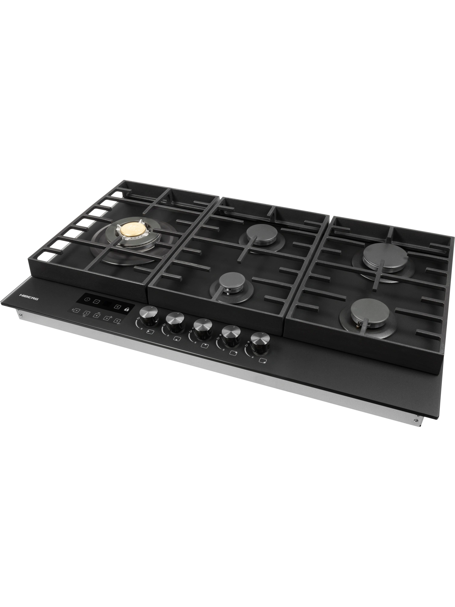 Встраиваемая газовая варочная поверхность HIBERG VM 9255 B – функциональный и элегантный выбор для интерьера большой кухни. Модель шириной 87,4 см и глубиной 51 см оборудована 5 газовыми конфорками с функциями автоматического электророзжига и газ-контроля. Варочная панель HIBERG VM 9255 B – отличный выбор для большой семьи. Закаленное матовое стекло NANO MATT – высокотехнологичное олеофобное покрытие, которое отталкивает воду и жир, облегчает процесс ухода за техникой и сохраняет чистоту рабочего пространства вокруг плиты. На черном матовом стекле варочной панели не остаются отпечатки пальцев. Прочная поверхность с повышенной устойчивостью к царапинам и сколам стойко выдерживает температурные и механические нагрузки. С помощью сенсорного таймера отключения газа можно контролировать время приготовления на нескольких конфорках сразу. Настройки устанавливаются с диапазоном от 1 до 99 минут. По истечении заданного времени конфорка отключается автоматически. Функцию можно выключить досрочно. Конфорки газовой варочной панели HIBERG VM 9255 B отличаются диаметром и мощностью. Самая большая конфорка WOK с тройным рядом пламени и мощностью 3,4 кВт обеспечивает усиленный жар. Ее используют для быстрого и равномерного нагрева дна и стенок конусной посуды. Кроме азиатских блюд, на конфорке WOK можно быстро вскипятить воду, пожарить до румяной корочки мясо и рыбу с добавлением небольшого количества масла, подогреть еду. Функция электророзжига позволяет с легкостью включить конфорку одной рукой. Система газ-контроля автоматически отключает газ у задутой сквозняком или залитой водой горелки. Усиленная добавочными элементами чугунная решетка уменьшает нагрузку на стеклянную поверхность и обеспечивает устойчивость тяжелой посуды на плите. В комплекте – сменный набор металлических ручек. Варочная поверхность HIBERG подключается к розетке через кабель с вилкой (идет в комплекте). Газовый выход расположен в правом углу. Тип подключения - штуцер (внешняя резьба). Гарантия на варочную панель HIBERG – 2 года.