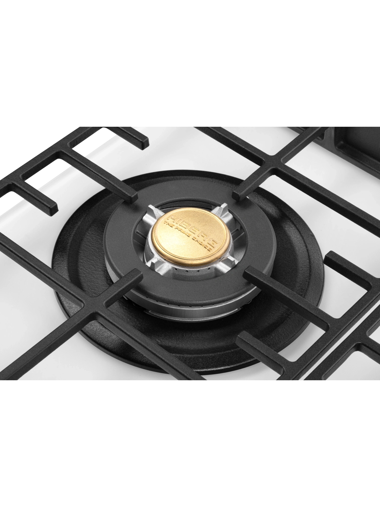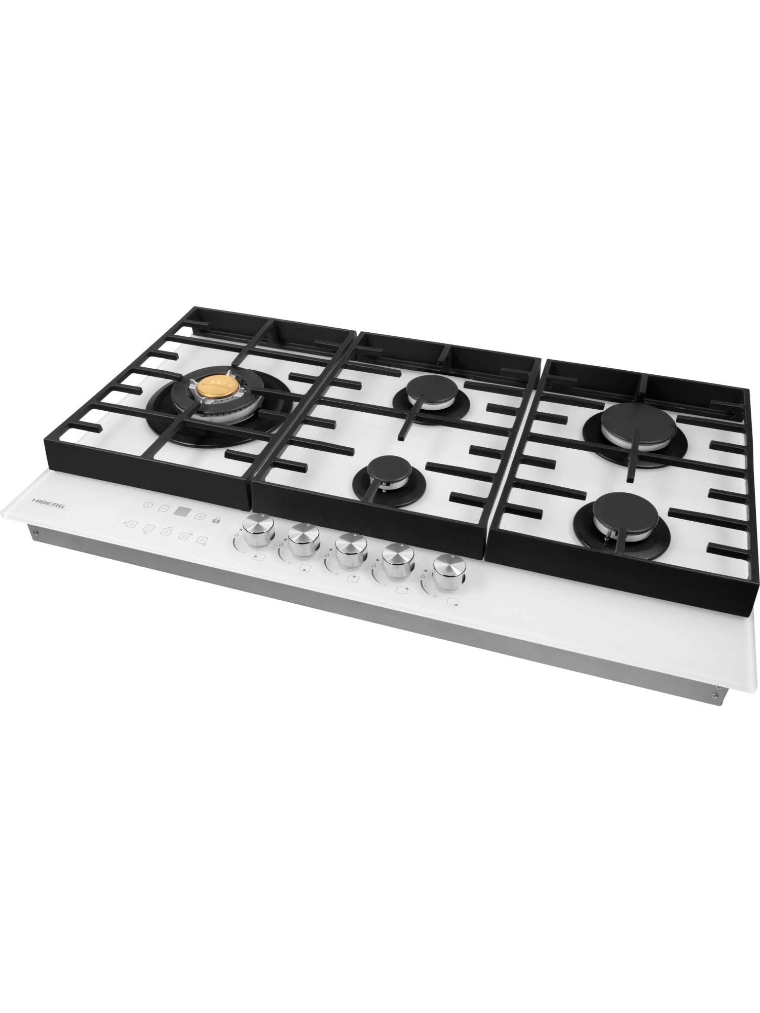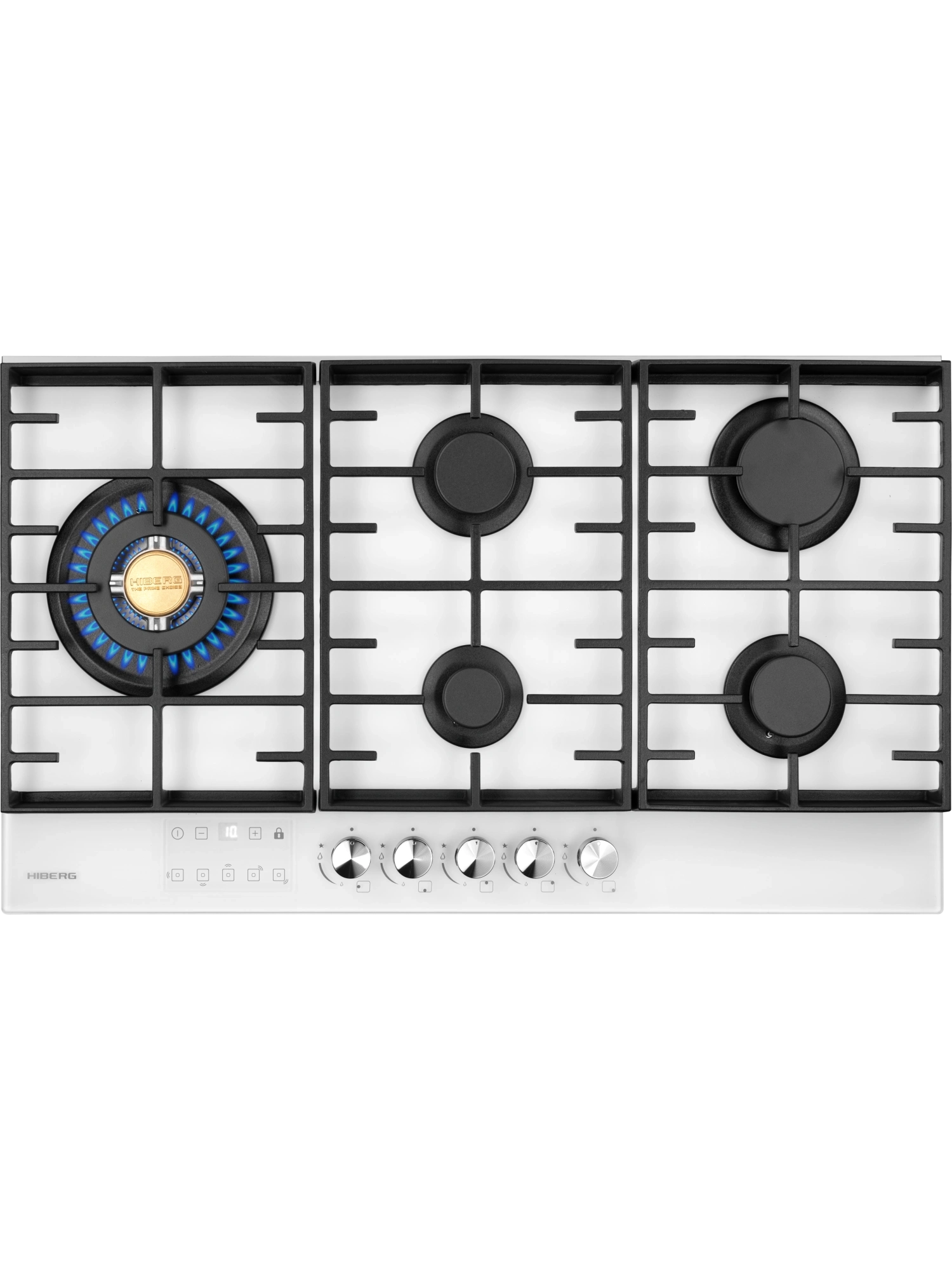 Встраиваемая газовая варочная поверхность HIBERG VM 9255 W – функциональный и элегантный выбор для интерьера большой кухни. Модель шириной 87,4 см и глубиной 51 см оборудована 5 газовыми конфорками с функциями автоматического электророзжига и газ-контроля. Варочная панель HIBERG VM 9255 W – отличный выбор для большой семьи. Закаленное матовое стекло NANO MATT – высокотехнологичное олеофобное покрытие, которое отталкивает воду и жир, облегчает процесс ухода за техникой и сохраняет чистоту рабочего пространства вокруг плиты. На белом матовом стекле варочной панели не остаются отпечатки пальцев. Прочная поверхность с повышенной устойчивостью к царапинам и сколам стойко выдерживает температурные и механические нагрузки. С помощью сенсорного таймера отключения газа можно контролировать время приготовления на нескольких конфорках сразу. Настройки устанавливаются с диапазоном от 1 до 99 минут. По истечении заданного времени конфорка отключается автоматически. Функцию можно выключить досрочно. Конфорки газовой варочной панели HIBERG VM 9255 W отличаются диаметром и мощностью. Самая большая конфорка WOK с тройным рядом пламени и мощностью 3,4 кВт обеспечивает усиленный жар. Ее используют для быстрого и равномерного нагрева дна и стенок конусной посуды. Кроме азиатских блюд, на конфорке WOK можно быстро вскипятить воду, пожарить до румяной корочки мясо и рыбу с добавлением небольшого количества масла, подогреть еду. Функция электророзжига позволяет с легкостью включить конфорку одной рукой. Система газ-контроля автоматически отключает газ у задутой сквозняком или залитой водой горелки. Усиленная добавочными элементами чугунная решетка уменьшает нагрузку на стеклянную поверхность и обеспечивает устойчивость тяжелой посуды на плите. В комплекте – сменный набор металлических ручек. Варочная поверхность HIBERG подключается к розетке через кабель с вилкой (идет в комплекте). Газовый выход расположен в правом углу. Тип подключения - штуцер (внешняя резьба). Гарантия на варочную панель HIBERG – 2 года.
