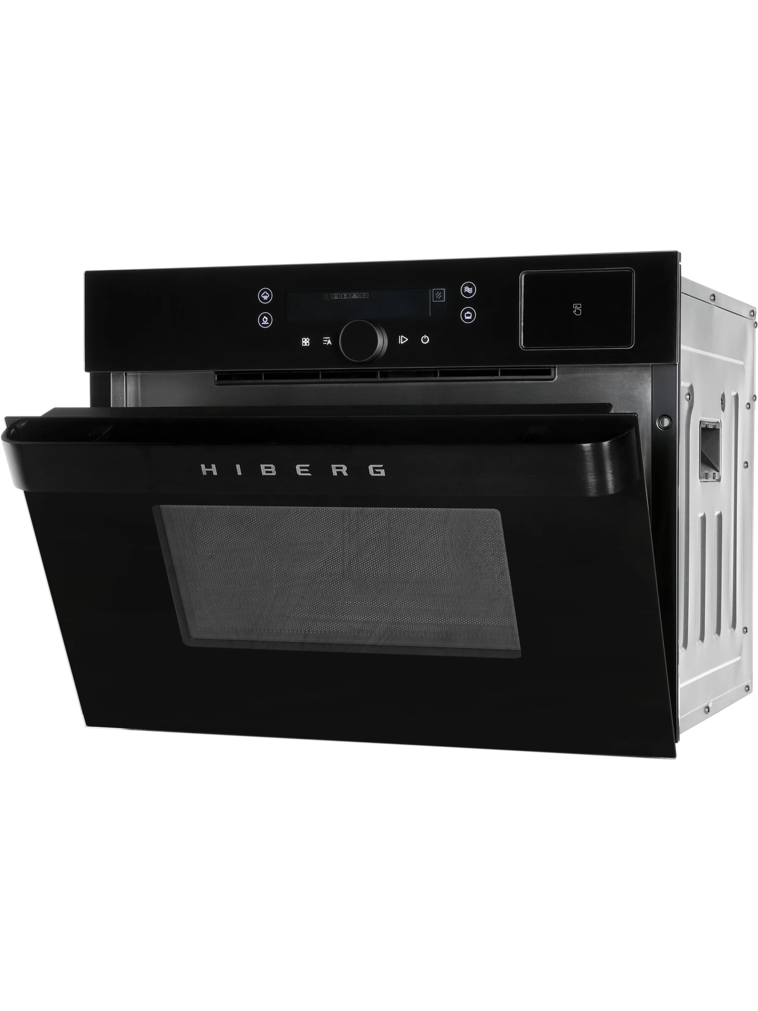 Описание Встраиваемый духовой шкаф HIBERG MS-VM 5115 B SMART с функцией готовки на пару, грилем, разогревом блюд с помощью микроволн, сенсорной панелью с запрограммированными рецептами — это уникальное устройство, созданное для комфортного приготовления и настоящих кулинарных шедевров! Стеклянный фасад духового шкафа черного цвета в сочетании с большой LED-панелью подчеркивает эксклюзивность модели. Духовой шкаф объемом 31 литр идеально подходит для встраивания в гарнитур в небольшом кухонном пространстве. Максимальная мощность 2000 Вт обеспечивает быстрый нагрев и позволяет достичь желаемой температуры для приготовления блюд. Внутренние боковые стенки камеры выполнены из нержавеющей стали, а дно — из стеклокерамики. Лаконичная сенсорная панель управления с большим LED-дисплеем обеспечивает понятное и комфортное пользование всеми режимами и функциями модели. Сенсорные кнопки и регулятор позволяют легко настроить все параметры приготовления и воспользоваться дополнительными функциями. Система рецептов в АВТОМЕНЮ избавляет от необходимости угадывать, какую температуру и время приготовления установить: просто выберите необходимый рецепт на дисплее. Режимы и функции Духовой шкаф, объединяющий в себе функции пароварки и СВЧ, поддерживает 7 режимов работы, имеет 7 дополнительных функций и 51 программу с предустановленными настройками, которые позволяют приготовить все, что только пожелаете. Диапазон рабочих температур в духовом шкафу: 38–230 °C. Приготовление на пару Это прекрасная возможность получить вкусную и полезную еду — рыбу, мясо, паровые котлеты из курицы или индейки, гарниры и овощи — без использования масла. Для этого нужно добавить воду в специальный резервуар до максимальной отметки и выставить необходимый режим приготовления на пару. Кроме пользы для здоровья, варка на пару экономит время, так как блюдо никогда не пригорит и готовится равномерно. Любая выпечка, приготовленная с помощью пара, получается просто изумительной. Мясо, рыба и овощи идеально пропекаются со всех сторон и приобретают золотистую хрустящую корочку, оставаясь сочными внутри и сохраняя все полезные свойства. Добавление пара к другим вариантам нагрева позволяет сделать блюда более сочными и ароматными, а также избежать их пересушивания. Микроволны Благодаря режиму «Микроволны» можно быстро и легко разогреть любимые блюда прямо в духовом шкафу. Устройство, объединяющее в себе функции микроволновой печи и духовки, экономит пространство на кухне. Режим «Микроволны» может использоваться как отдельная программа для разогревания блюд, так и совместно с другими режимами нагрева: пар и микроволны, гриль и микроволны. Это позволяет готовить широкий спектр блюд — от простых закусок до сложных десертов — и все с помощью одного устройства. Режим «Гриль» В этом режиме благодаря мощному нагревательному элементу сверху получается сочное, с румяной корочкой мясо, запеченные овощи, пицца, хрустящие картофельные дольки, птица или рыба с золотистой корочкой. При одновременной работе пара и гриля в духовом шкафу создается вихревой поток горячего воздуха, что обеспечивает равномерную прожарку. Блюда получаются нежными внутри и хрустящими снаружи. Режим «Тушение» Главное преимущество режима — сохранение всех полезных свойств и витаминов в продуктах, ч