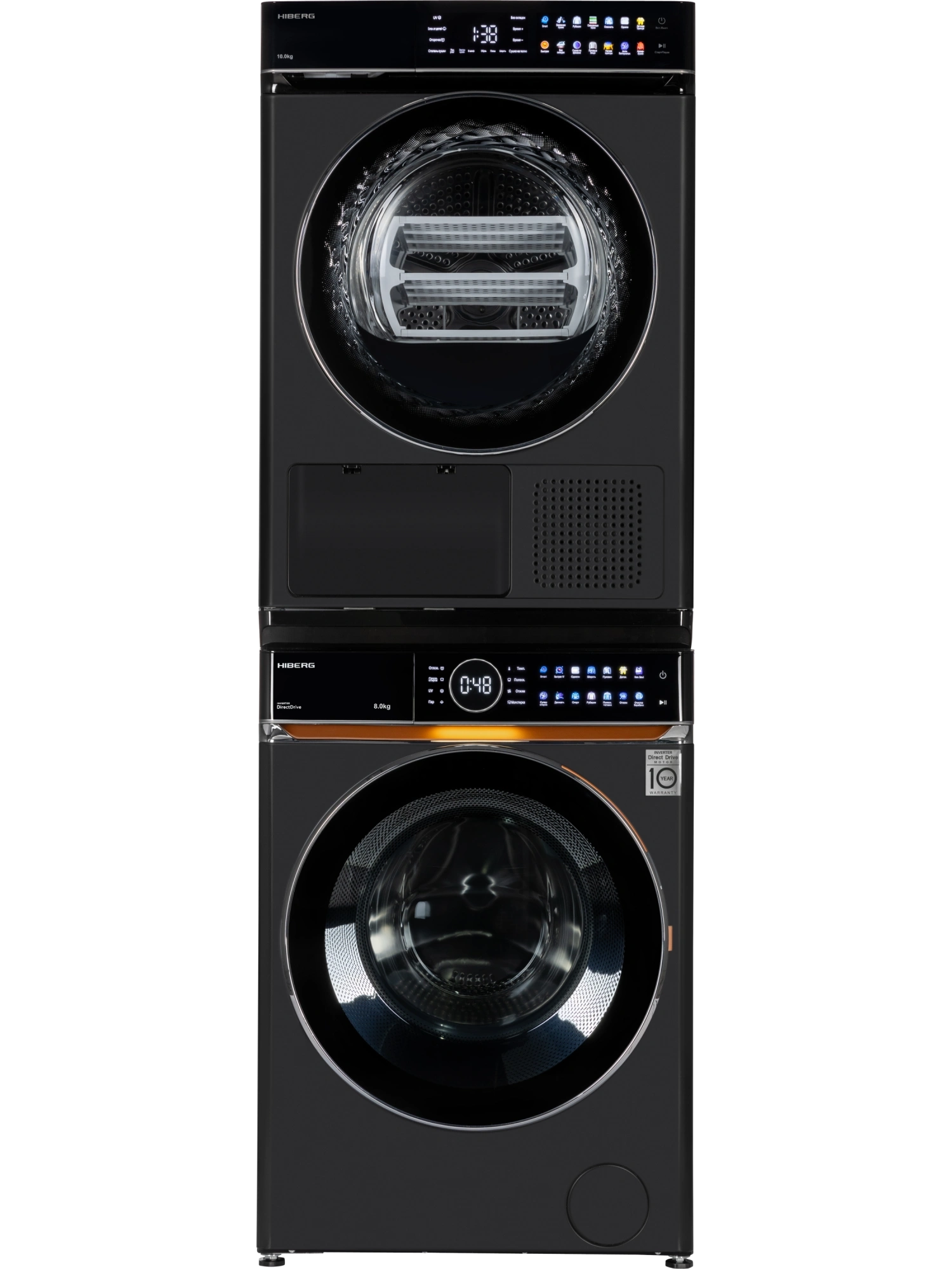 Комбинация Стиральная машина HIBERG i-DDQ10 - 814 B + Сушильная машина HIBERG HDQ11 - 10 B Цвет: черный