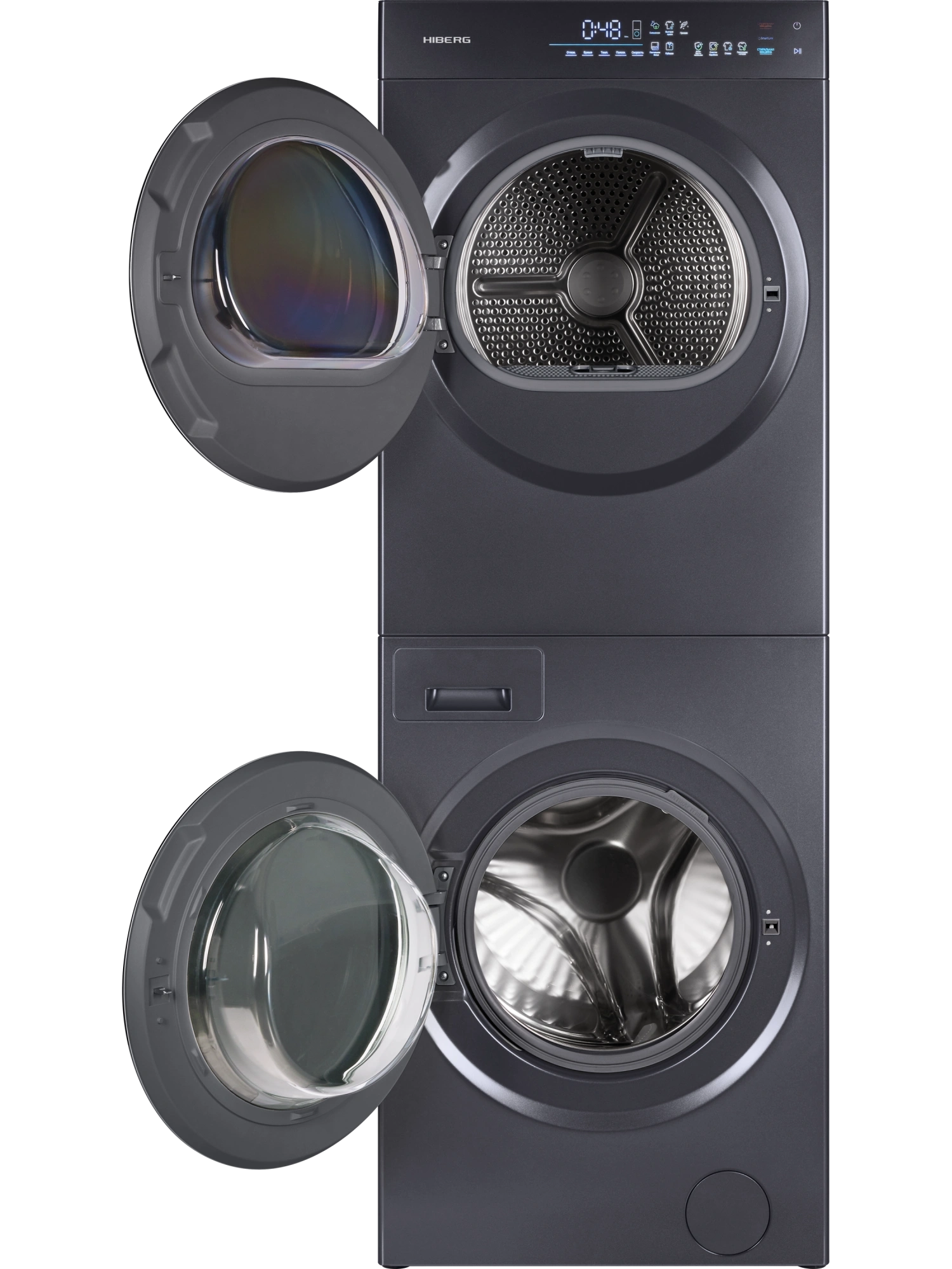 Монокомплект стиральной и сушильной машин HIBERG TURELLE i-10 Sd с раздельными барабанами – представитель семейства многофункциональной бытовой техники для качественного ухода за одеждой в домашних условиях. Модель из двух зависимых друг от друга инверторных устройств с единой панелью управления позволит эффективно организовать пространство ванной комнаты, выполняя все этапы - от замачивания до легкой глажки вещей. Премиальная стирально-сушильная машина станет достойным украшением изысканных дизайнерских интерьеров. Два инверторных двигателя и тепловой насос устройств обусловливают экономичный расход электроэнергии и позволяют уменьшить уровень шума во время стирки до 62 дБ, а в режиме отжима со скоростью 1200 оборотов в минуту – до 72 дБ. Монокомплект стиральной и сушильной машин темно-серого цвета с черными дверцами люков выполнен в современном дизайне. В верхней части устройства расположена интуитивно понятная сенсорная панель управления на цветном LED-дисплее. Индикация подскажет тип стирки, температуру, показатели сушки и полоскания, скорость, время, отложенный старт, защиту от детей, код ошибки, старт или паузу и дополнительные опции. Барабаны отделений выполнены из нержавеющей стали. Загрузка стиральной и сушильной машин - по 10,5 килограммов сухого и влажного белья соответственно. Для оптимального результата рекомендована неполная загрузка. Угол открытия в 135° обеспечивает полное раскрытие каждой дверцы и свободный доступ к одежде и домашнему текстилю. ПРОГРАММЫ И ФУНКЦИИ Функция памяти сохранит последние установленные настройки стирально-сушильной машины в случае внезапного отключения электроэнергии. Отсрочка старта поможет задать удобное для пользователя время окончания стирки и сушки, включая продолжительность цикла работы. Максимальное время отсрочки – 24 часа. Функция защиты от детей блокирует дверцы и панель управления во время работы каждой из машин. Подсветка барабанов делает загрузку и выгрузку белья легкой и удобной, позволяя проверить, все ли вещи были вынуты по окончании цикла. Стиральная машина Стиральное отделение выполняет работу в режимах: «Смешанная», «Быстрая», «Пуховик», «Постельное белье», «Антибактериальная», «Очистка барабана», «Отжим», «Полоскание + отжим». У каждой программы предусмотрены дополнительные функции. Датчик контроля пенообразования включает насос при превышении нормы и сохраняет качество полоскания на должном уровне. Контроль дисбаланса позволяет регулировать распределение белья в процессе отжима, что понижает уровень шума и вибрацию машины. Дополнительное полоскание позволит скорректировать чистоту белья в случае остатков моющего средства на вещах. Возможность дозагрузки белья избавит от необходимости перезапуска стирки. Система «Аквастоп» способна предотвратить непредвиденную протечку в результате внезапных повреждений. Сушильная машина Программы сушки: «Смешанная», «Быстрая», «Пуховик», «Постельное белье», «Воздушная стирка», «Нагрев одежды», «Антибактериальная», «Рубашки», «Время сушки». К каждой из них запрограммирован дополнительный набор функций. Кнопка выбора степени сушки с вариантами «Экстра», «Средняя» и «Сушка под утюг» позволяет выбрать нужную в зависимости от типа ткани. Ширина, глубина и высота стирально-сушильной машины: стиральный блок 