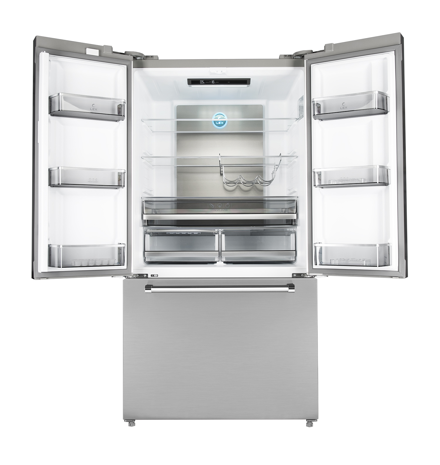 Конструкция French Door дает возможность легко и эффективно хранить продукты в холодильной и морозильной камерах. Модель в черном или стальном цвете прекрасно дополнит практически любой кухонный интерьер.