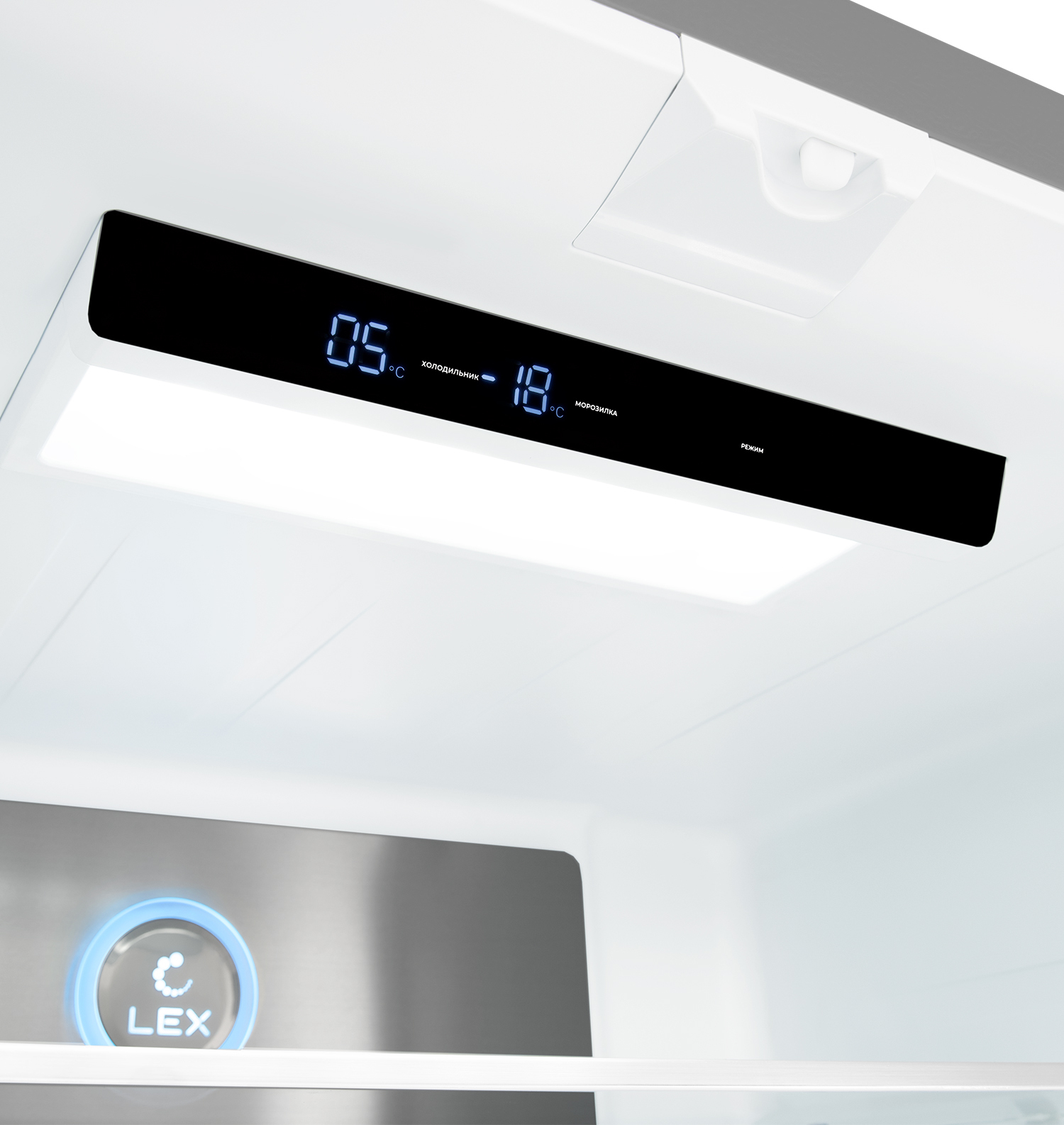 Электронное управление двумя контурами охлаждения помогает точно настраивать температуру внутри каждой камеры. Холодильник имеет удобный дисплей и яркую LED-подсветку, которые упрощают контроль условий хранения. Функции суперохлаждения и суперзаморозки позволяют быстро снижать температуру, сохраняя вкус и питательные свойства продуктов.