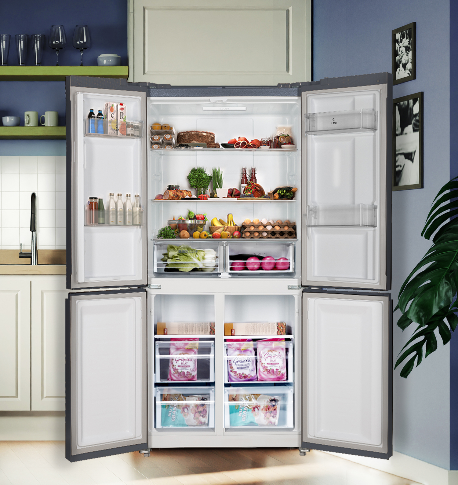 Модель LEX LCD 450 — передовые технологии и множество вариантов дизайна. Удобная панель управления и расположение дверей по типу CROSS DOOR помогут поддерживать нужные параметры хранения для каждого отделения. Холодильник с мощным, экономичным и тихим инверторным компрессором работает по технологии Total No Frost, которая не дает инею скапливаться внутри рабочих камер, значительно упрощая уход за устройством. Запатентованная многопоточная система охлаждения быстро и равномерно распределяет холодный воздух по всем зонам хранения. Модель позволяет хранить продукты при температуре от +8 °С в холодильном отделении до –23 °С в морозильном. А в режиме суперзаморозки можно установить еще более низкое значение: –28 °С. Суперрежимы позволяют максимально охладить содержимое во всех отделениях за короткое время. Это удобно, если вы загружаете сразу много продуктов, например, после похода в супермаркет или отключения электричества. В последнем случае также может пригодиться режим поддержания температуры, который будет работать 10 часов. Еще одна полезная функция — «Отпуск»: когда она активна, в каждой камере устанавливается температура, оптимальная одновременно и для сохранения свежести продуктов, и для уменьшения расхода электричества. Для этого холодильника можно выбрать один из шести стилей матового или глянцевого, стеклянного или металлического корпуса в разных цветах.