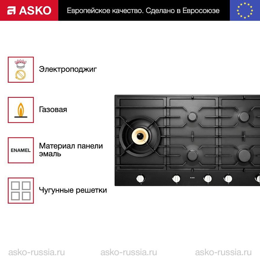 При повороте ручки активируется электроподжиг, который избавляет Вас от опасности обжечься, слишком близко протянув руку к конфорке. Пламя загорается простым поворотом переключателя, без использования спичек и зажигалок, что гарантирует безопасную и комфортную эксплуатацию. Данной функцией оснащена каждая конфорка. Безопасную эксплуатацию варочной панели Аско HG1986AB осуществляет система газ-контроль, которая подразумевает, что благодаря специальным датчику и клапану при случайном угасании огня газ мгновенно блокируется и перестает поступать — утечка предотвращена.
