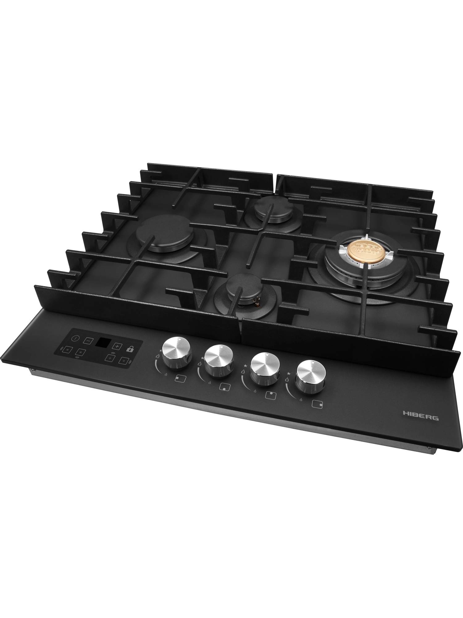 Газовая варочная поверхность HIBERG VM 6245 B оснащена четырьмя газовыми конфорками с функциями автоматического электророзжига и газ-контроля. Поверхность из закалённого матового стекла с технологией покрытия NANO MATT — уникальное решение для создания эстетичного и технологичного пространства на вашей кухне. NANO MATT — это новейшее высокотехнологичное олеофобное покрытие, отталкивающее воду и жир. На чёрном матовом стекле не остаются отпечатки пальцев, оно отлично выдерживает температурные и перепады и механические воздействия. Индивидуальный сенсорный таймер отключения газа даёт возможность контролировать время готовки каждого блюда. Таймер устанавливается с диапазоном от 1 до 99 минут, по истечении заданного времени конфорка отключается автоматически. Четыре конфорки отличаются по диаметру и мощности. WOK — конфорка с тройным рядом пламени и мощностью 3,4 кВт — позволяет быстро вскипятить воду, жарить мясо на большом огне, а также готовить блюда восточной кухни. Поверх конфорок на варочной панели установлены прочные чугунные решётки. Они имеют специальную форму, которая снижает нагрузку на стеклянное покрытие. Такие держатели удобны в использовании и уходе, не подвержены воздействию высоких температур и отличаются длительным сроком службы. Мощность любой горелки можно регулировать с помощью поворотных переключателей. Для удобства пользования варочной панелью в переключатели встроен электророзжиг, который позволит одним нажатием руки легко включить нужную конфорку без использования спичек. Эффективная система безопасности «Газ-контроль»контролирует подачу газа. В случае пролива жидкости на варочную панель или затухания пламени от сквозняка подача газа автоматически прекращается. Варочная поверхность HIBERG подключается к розетке через кабель с вилкой (идет в комплекте). Газовый выход расположен в правом углу. Тип подключения - штуцер (внешняя резьба). Гарантия на варочную поверхность HIBERG — 2 года.