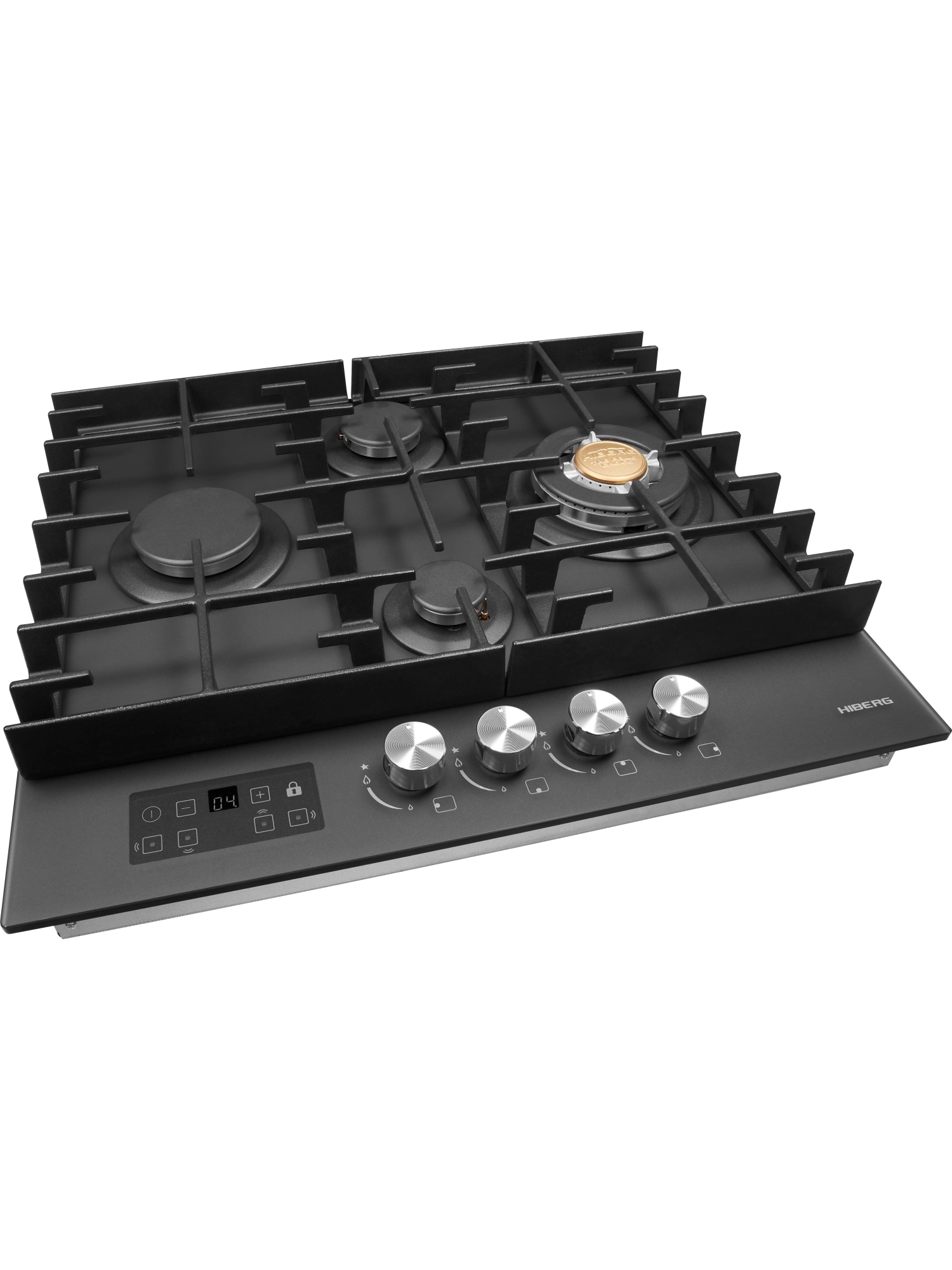 Газовая варочная поверхность HIBERG VM 6245 Gr оснащена четырьмя газовыми конфорками с функциями автоматического электророзжига и газ-контроля. Поверхность из закалённого матового стекла с технологией покрытия NANO MATT — уникальное решение для создания эстетичного и технологичного пространства на вашей кухне. NANO MATT — это новейшее высокотехнологичное олеофобное покрытие, отталкивающее воду и жир. На сером матовом стекле не остаются отпечатки пальцев, оно отлично выдерживает температурные и перепады и механические воздействия. Индивидуальный сенсорный таймер отключения газа даёт возможность контролировать время готовки каждого блюда. Таймер устанавливается с диапазоном от 1 до 99 минут, по истечении заданного времени конфорка отключается автоматически. Четыре конфорки отличаются по диаметру и мощности. WOK — конфорка с тройным рядом пламени и мощностью 3,4 кВт — позволяет быстро вскипятить воду, жарить мясо на большом огне, а также готовить блюда восточной кухни. Поверх конфорок на варочной панели установлены прочные чугунные решётки. Они имеют специальную форму, которая снижает нагрузку на стеклянное покрытие. Такие держатели удобны в использовании и уходе, не подвержены воздействию высоких температур и отличаются длительным сроком службы. Мощность любой горелки можно регулировать с помощью поворотных переключателей. Для удобства пользования варочной панелью в переключатели встроен электророзжиг, который позволит одним нажатием руки легко включить нужную конфорку без использования спичек. Эффективная система безопасности «Газ-контроль»контролирует подачу газа. В случае пролива жидкости на варочную панель или затухания пламени от сквозняка подача газа автоматически прекращается. Варочная поверхность HIBERG подключается к розетке через кабель с вилкой (идет в комплекте). Газовый выход расположен в правом углу. Тип подключения - штуцер (внешняя резьба). Гарантия на варочную поверхность HIBERG — 2 года.