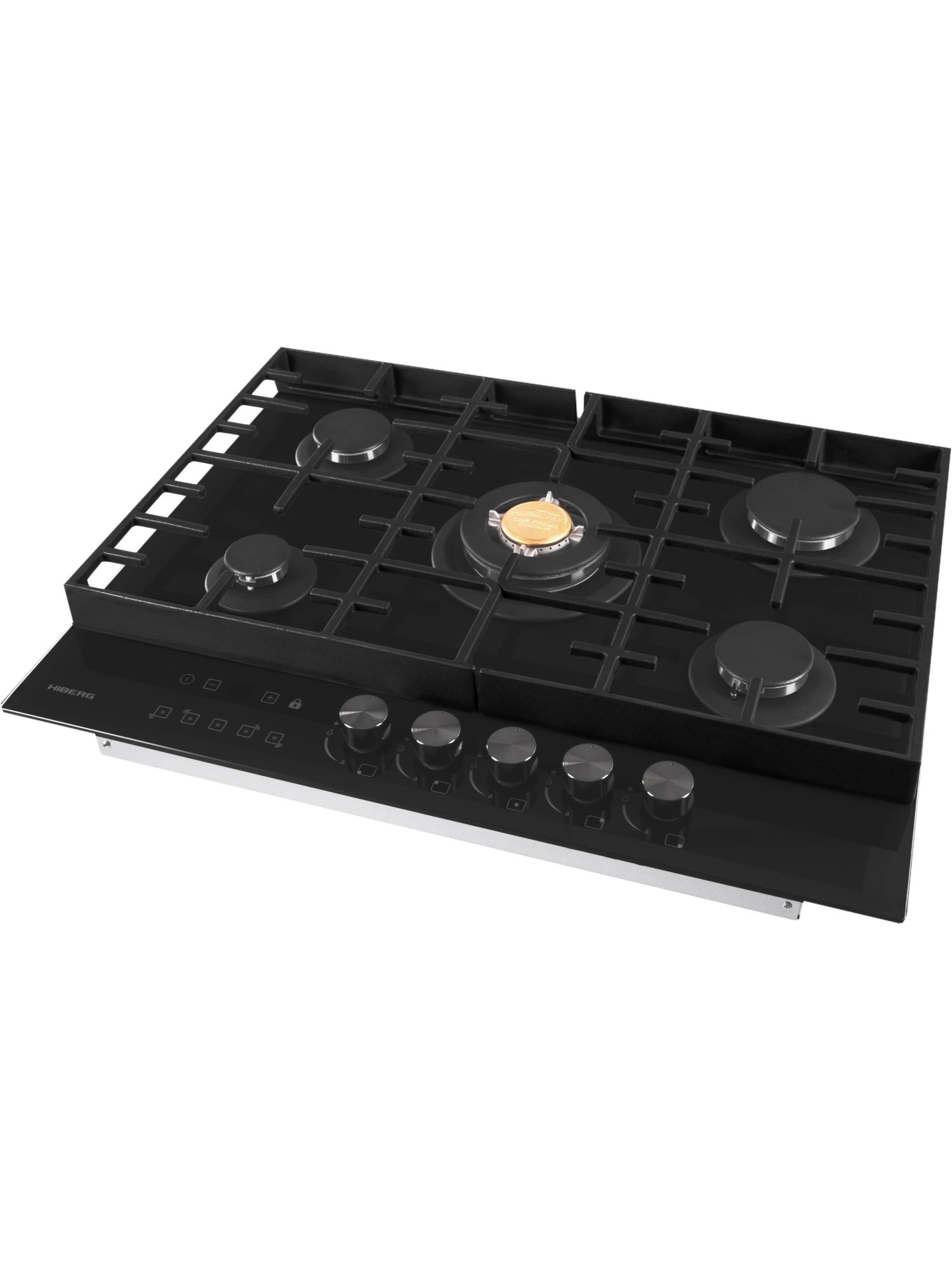 Встраиваемая газовая варочная поверхность HIBERG VM 7155 B из закаленного стекла в черном цвете, оснащена 5 конфорками и функциями: автоматический «электророзжиг», «газ-контроль» и сенсорный таймер отключения газа. В комплект варочной поверхности входит дополнительный комплект ручек регуляторов в ретро-стиле. Рабочая поверхность выполнена из закаленного стекла – прочного и долговечного материала, на ней располагаются 5 конфорок разных по диаметру и мощности огня. WOK конфорка мощностью 3,4 кВт позволяет ускорить закипание воды и использовать интенсивную скорость прожарки. Сенсорный индивидуальный таймер отключения газа дает возможность контролировать время готовки каждого блюда. Каждая конфорка будет отключаться именно в то время, которое было задано именно для нее. Таймер устанавливается с диапазоном от 1 до 99 минут, по истечении заданного времени конфорка отключается автоматически. Мощность любой горелки можно регулировать с помощью поворотных переключателей. Для удобства пользования варочной панелью в переключатели встроен «электророзжиг», который позволит одним нажатием руки легко включить нужную конфорку без использования спичек. В варочной поверхности эффективно продумана система безопасности при утечке газа. В случае пролива жидкости на варочную панель или затухания пламени от сквозняка, в конфорке срабатывает функция газ-контроль и подача газа прекращается. Поверх конфорок установлены чугунные решетки новой конструкции: соприкасаясь со стеклянной панелью только спереди и сзади, обеспечивают меньшую нагрузку на стекло и не оставляют царапин. Прочные чугунные решетки удобные в уходе, не подвержены воздействию высоких температур и отличаются длительным сроком службы. Особенности и преимущества: поверхность из закаленного стекла; электророзжиг; газ-контроль; сенсорный таймер; WOK конфорка; улучшенные чугунные решетки; 2 комплекта ручек: в ретро-стиле и современном; цвет: черный. Варочная поверхность HIBERG подключается к розетке через кабель с вилкой (идет в комплекте). Газовый выход расположен в правом углу. Тип подключения - штуцер (внешняя резьба). Гарантия на варочную поверхность HIBERG – 2 года.