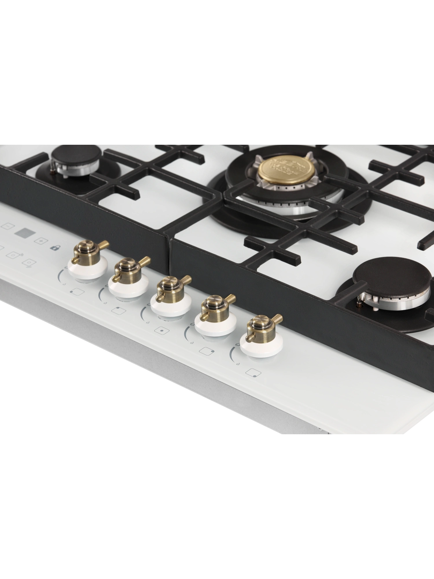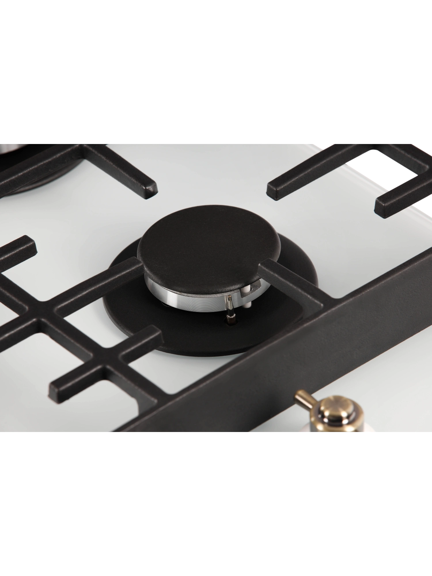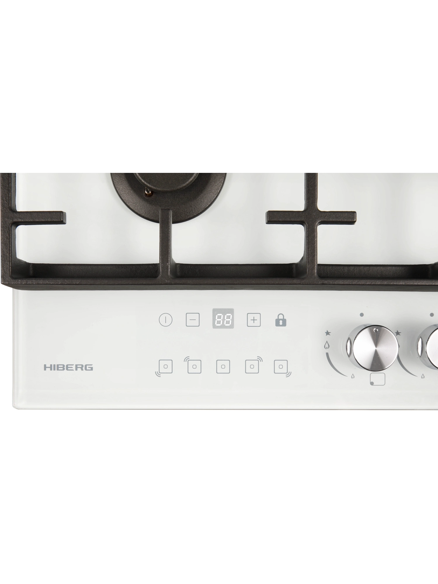 Встраиваемая газовая варочная поверхность HIBERG VM 7155 W из закаленного стекла в белом цвете, оснащена 5 конфорками и функциями: автоматический «электророзжиг», «газ-контроль» и сенсорный таймер отключения газа. Рабочая поверхность выполнена из закаленного стекла – прочного и долговечного материала, на ней располагаются 5 конфорок разных по диаметру и мощности огня. WOK конфорка мощностью 3,4 кВт позволяет ускорить закипание воды и использовать интенсивную скорость прожарки. Сенсорный индивидуальный таймер отключения газа дает возможность контролировать время готовки каждого блюда. Каждая конфорка будет отключаться именно в то время, которое было задано именно для нее. Таймер устанавливается с диапазоном от 1 до 99 минут, по истечении заданного времени конфорка отключается автоматически. Мощность любой горелки можно регулировать с помощью поворотных переключателей. Для удобства пользования варочной панелью в переключатели встроен «электророзжиг», который позволит одним нажатием руки легко включить нужную конфорку без использования спичек. В варочной поверхности эффективно продумана система безопасности при утечке газа. В случае пролива жидкости на варочную панель или затухания пламени от сквозняка, в конфорке срабатывает функция газ-контроль и подача газа прекращается. Поверх конфорок установлены чугунные решетки новой конструкции: соприкасаясь со стеклянной панелью только спереди и сзади, обеспечивают меньшую нагрузку на стекло и не оставляют царапин. Прочные чугунные решетки удобные в уходе, не подвержены воздействию высоких температур и отличаются длительным сроком службы. Особенности и преимущества: поверхность из закаленного стекла; электророзжиг; газ-контроль; сенсорный таймер; WOK конфорка; улучшенные чугунные решетки; цвет: белый. Варочная поверхность HIBERG подключается к розетке через кабель с вилкой (идет в комплекте). Газовый выход расположен в правом углу. Тип подключения - штуцер (внешняя резьба). Гарантия на варочную поверхность HIBERG – 2 года.