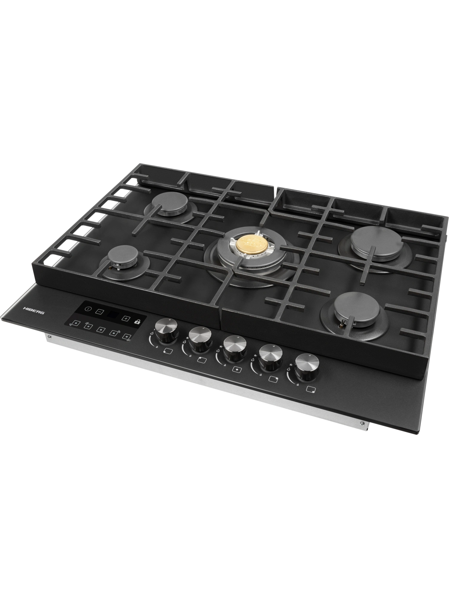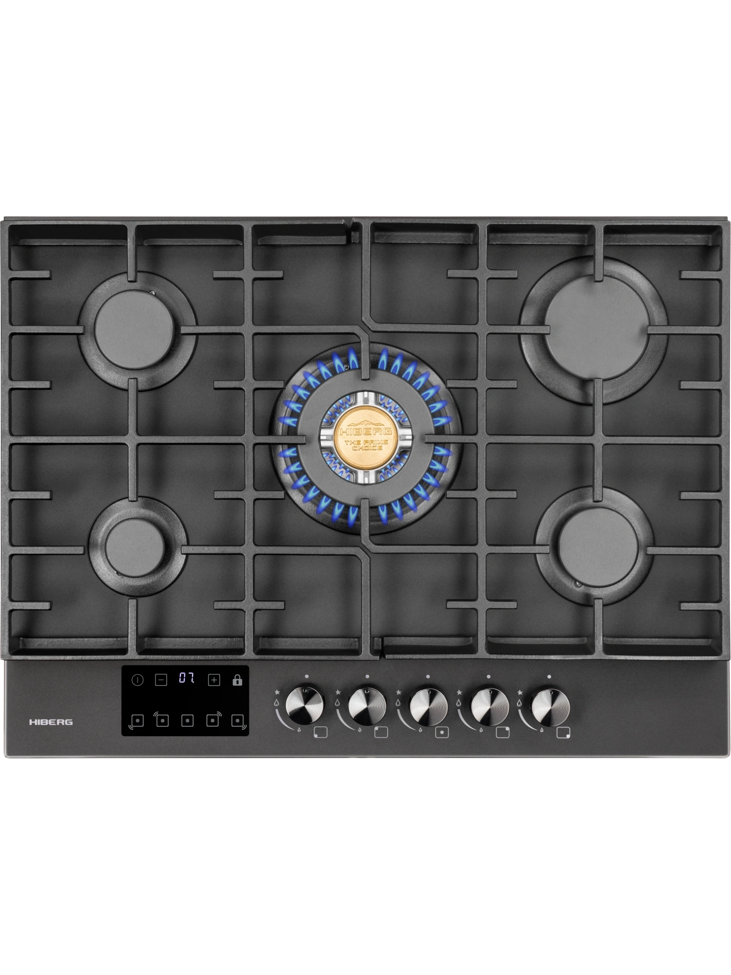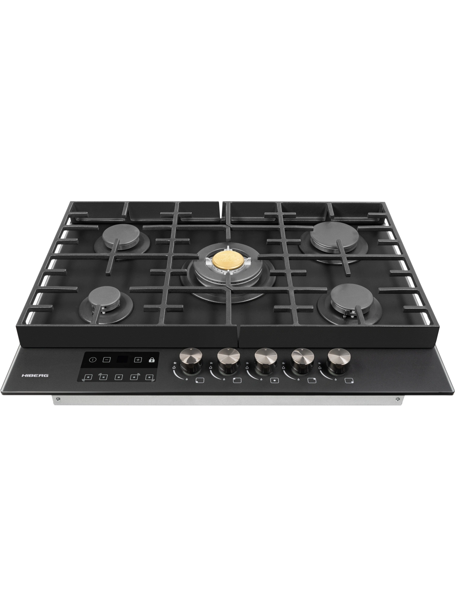 Газовая варочная поверхность HIBERG VM 7255 B – функциональный и элегантный выбор для современной кухни. Модель шириной 68,4 см и глубиной 51 см оборудована 5 газовыми конфорками с функциями автоматического электророзжига и газ-контроля. Варочная панель HIBERG VM 7255 B – отличное решение для большой семьи. Закаленное матовое стекло NANO MATT – новейшее высокотехнологичное олеофобное покрытие. Поверхность отталкивает воду и жир, облегчая процесс ухода за техникой и сохраняя чистоту рабочего пространства вокруг плиты. На черном матовом стекле варочной панели не остаются отпечатки пальцев. Прочная поверхность с повышенной устойчивостью к царапинам и сколам выдерживает температурные перепады и механические воздействия, а процесс приготовления блюд остается для хозяек в удовольствие. С помощью сенсорного таймера отключения газа можно контролировать время приготовления на нескольких конфорках сразу. Настройки устанавливаются с диапазоном от 1 до 99 минут. По истечении заданного времени конфорка отключается автоматически. При необходимости таймер можно выключить досрочно. Пять конфорок газовой варочной панели отличаются диаметром и мощностью. Дополнительная горелка позволяет готовить еще больше блюд одновременно. Самая большая конфорка – WOK с тройным рядом пламени и мощностью 3,4 кВт. Усиленный жар способен быстро нагреть толстостенную глубокую посуду с небольшим диаметром дна для приготовления азиатской кухни. Также на ней можно быстро вскипятить воду, ускорить процесс жарки мясных и рыбных блюд до хрустящей корочки при добавлении небольшого количества жира. Функция электророзжига позволяет включить конфорку одной рукой. Система газ-контроля автоматически отключает газ у задутой сквозняком или залитой водой горелки. Чугунная решетка с добавочными элементами уменьшает нагрузку на стеклянную поверхность и усиливает устойчивость тяжелой посуды на плите, облегчая ее перемещение. В комплекте – сменный набор металлических ручек. Варочная поверхность HIBERG подключается к розетке через кабель с вилкой (идет в комплекте). Газовый выход расположен в правом углу. Тип подключения - штуцер (внешняя резьба). Гарантия на варочную панель HIBERG – 2 года.