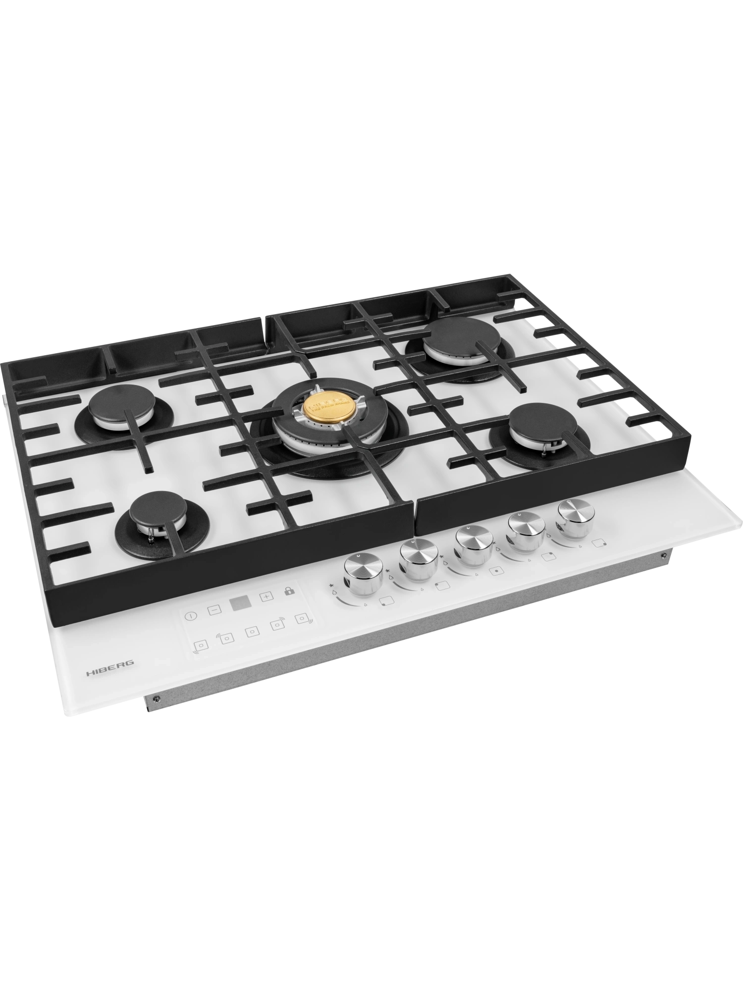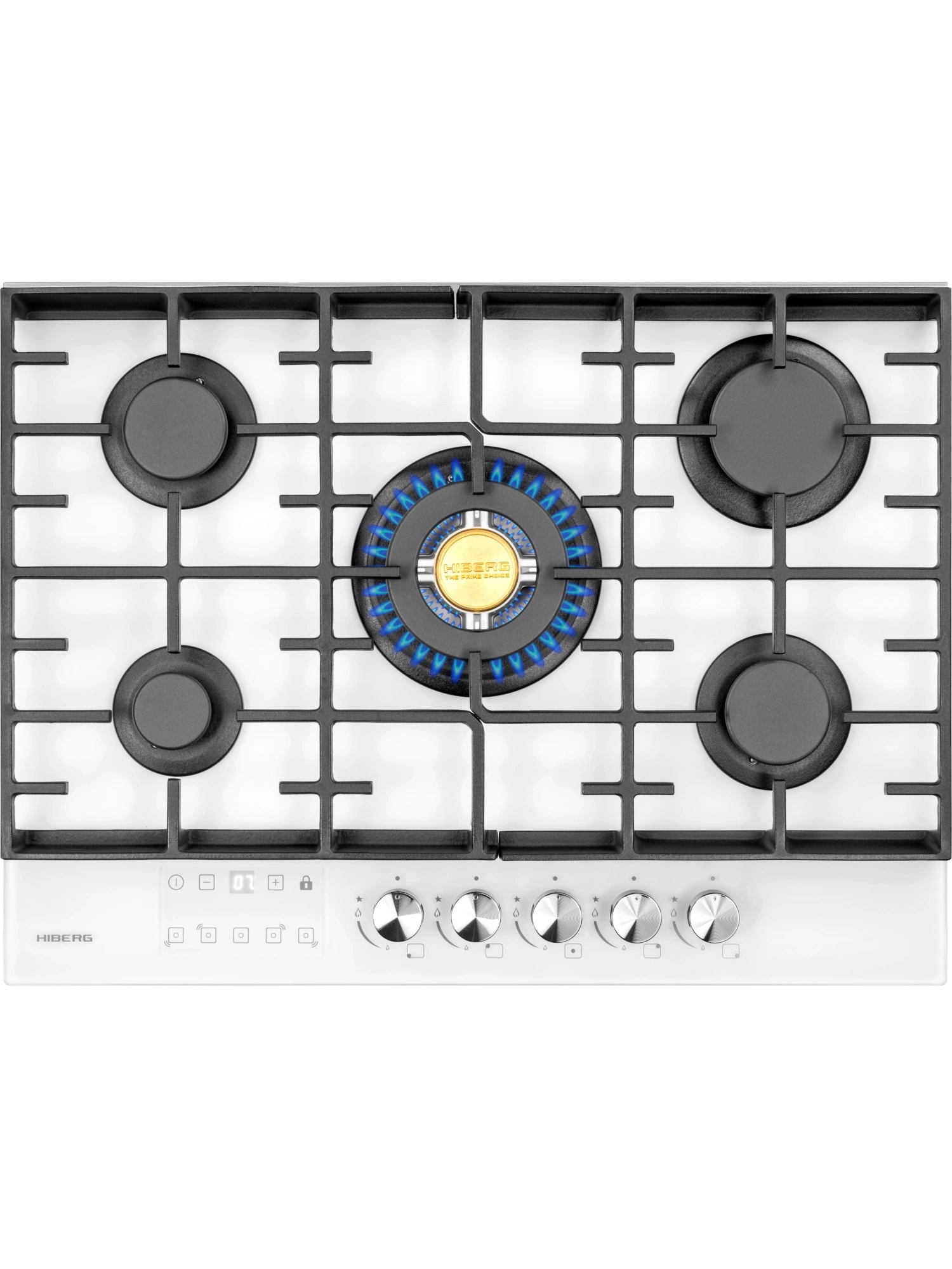 Газовая варочная поверхность HIBERG VM 7255 W – функциональный и элегантный выбор для современной кухни. Модель шириной 68,4 см и глубиной 51 см оборудована 5 газовыми конфорками с функциями автоматического электророзжига и газ-контроля. Варочная панель HIBERG VM 7255 W – отличное решение для большой семьи. Закаленное матовое стекло NANO MATT – новейшее высокотехнологичное олеофобное покрытие. Поверхность отталкивает воду и жир, облегчая процесс ухода за техникой и сохраняя чистоту рабочего пространства вокруг плиты. На белом матовом стекле варочной панели не остаются отпечатки пальцев. Прочная поверхность с повышенной устойчивостью к царапинам и сколам выдерживает температурные перепады и механические воздействия, а процесс приготовления блюд остается для хозяек в удовольствие. С помощью сенсорного таймера отключения газа можно контролировать время приготовления на нескольких конфорках сразу. Настройки устанавливаются с диапазоном от 1 до 99 минут. По истечении заданного времени конфорка отключается автоматически. При необходимости таймер можно выключить досрочно. Пять конфорок газовой варочной панели отличаются диаметром и мощностью. Дополнительная горелка позволяет готовить еще больше блюд одновременно. Самая большая конфорка – WOK с тройным рядом пламени и мощностью 3,4 кВт. Усиленный жар способен быстро нагреть толстостенную глубокую посуду с небольшим диаметром дна для приготовления азиатской кухни. Также на ней можно быстро вскипятить воду, ускорить процесс жарки мясных и рыбных блюд до хрустящей корочки при добавлении небольшого количества жира. Функция электророзжига позволяет с легкостью включить конфорку одной рукой. Система газ-контроля автоматически отключает газ у задутой сквозняком или залитой водой горелки. Чугунная решетка с добавочными элементами уменьшает нагрузку на стеклянную поверхность и усиливает устойчивость тяжелой посуды на плите, облегчая ее перемещение. В комплекте – сменный набор металлических ручек Варочная поверхность HIBERG подключается к розетке через кабель с вилкой (идет в комплекте). Газовый выход расположен в правом углу. Тип подключения - штуцер (внешняя резьба). Гарантия на варочную панель HIBERG – 2 года.