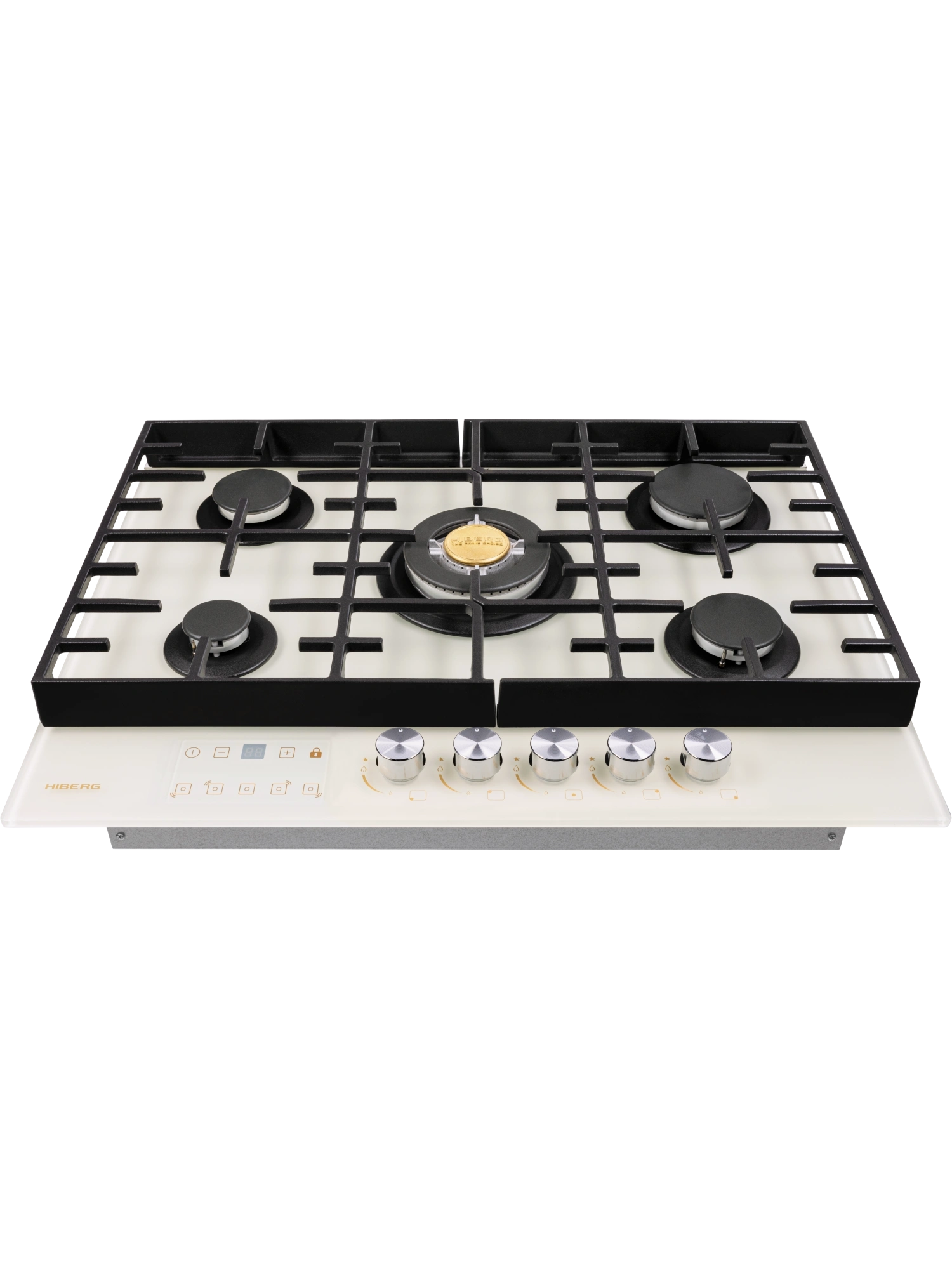 Газовая варочная поверхность HIBERG VM 7255 Y – функциональный и элегантный выбор для современной кухни. Модель шириной 68,4 см и глубиной 51 см оборудована 5 газовыми конфорками с функциями автоматического электророзжига и газ-контроля. Варочная панель HIBERG VM 7255 Y – отличное решение для большой семьи. Закаленное матовое стекло NANO MATT – новейшее высокотехнологичное олеофобное покрытие. Поверхность отталкивает воду и жир, облегчая процесс ухода за техникой и сохраняя чистоту рабочего пространства вокруг плиты. На бежевом матовом стекле варочной панели не остаются отпечатки пальцев. Прочная поверхность с повышенной устойчивостью к царапинам и сколам выдерживает температурные перепады и механические воздействия, а процесс приготовления блюд остается для хозяек в удовольствие. С помощью сенсорного таймера отключения газа можно контролировать время приготовления на нескольких конфорках сразу. Настройки устанавливаются с диапазоном от 1 до 99 минут. По истечении заданного времени конфорка отключается автоматически. При необходимости таймер можно выключить досрочно. Пять конфорок газовой варочной панели отличаются диаметром и мощностью. Дополнительная горелка позволяет готовить еще больше блюд одновременно. Самая большая конфорка – WOK с тройным рядом пламени и мощностью 3,4 кВт. Усиленный жар способен быстро нагреть толстостенную глубокую посуду с небольшим диаметром дна для приготовления азиатской кухни. Также на ней можно быстро вскипятить воду, ускорить процесс жарки мясных и рыбных блюд до хрустящей корочки при добавлении небольшого количества жира. Функция электророзжига позволяет с легкостью включить конфорку одной рукой. Система газ-контроля автоматически отключает газ у задутой сквозняком или залитой водой горелки. Чугунная решетка с добавочными элементами уменьшает нагрузку на стеклянную поверхность и усиливает устойчивость тяжелой посуды на плите, облегчая ее перемещение. В комплекте – сменный набор металлических ручек. Варочная поверхность HIBERG подключается к розетке через кабель с вилкой (идет в комплекте). Газовый выход расположен в правом углу. Тип подключения - штуцер (внешняя резьба). Гарантия на варочную панель HIBERG – 2 года.