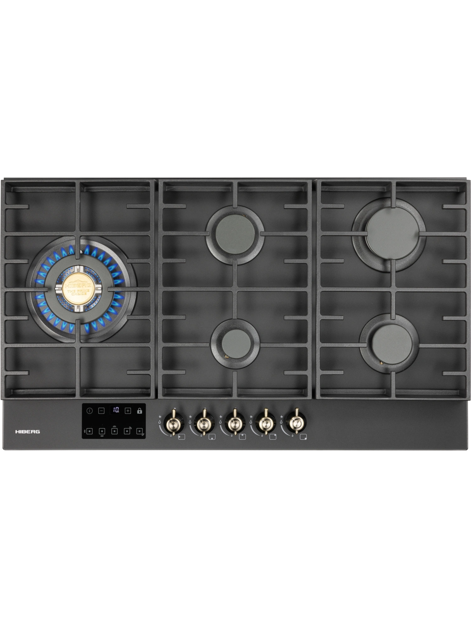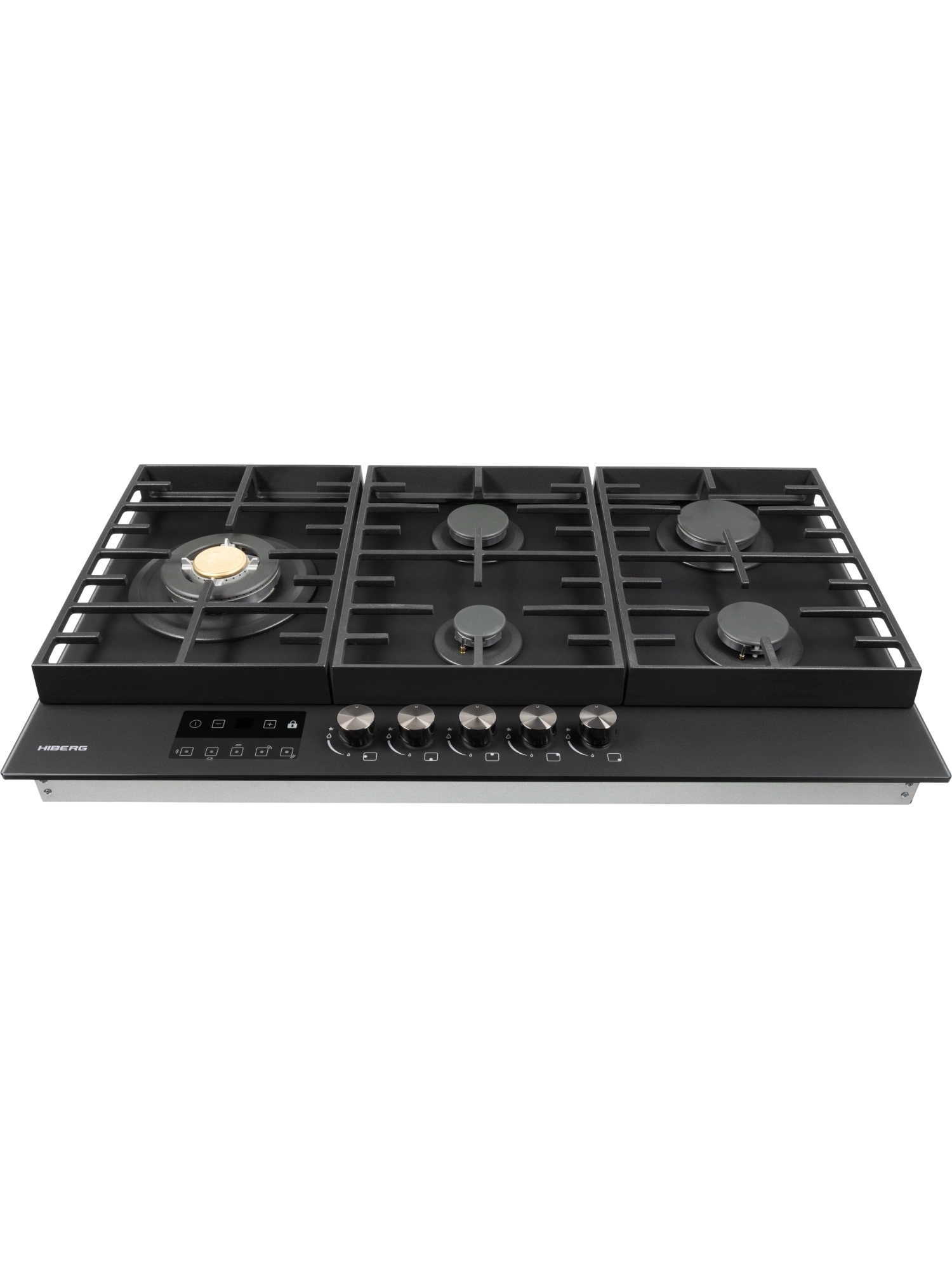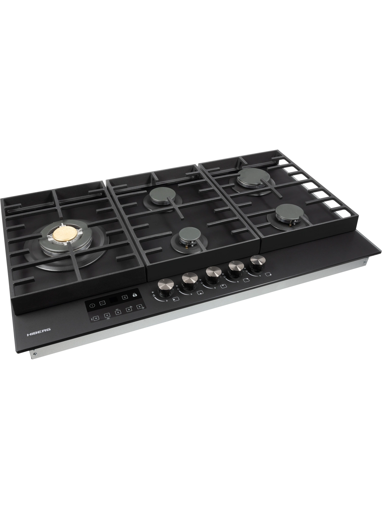 Встраиваемая газовая варочная поверхность HIBERG VM 9255 B – функциональный и элегантный выбор для интерьера большой кухни. Модель шириной 87,4 см и глубиной 51 см оборудована 5 газовыми конфорками с функциями автоматического электророзжига и газ-контроля. Варочная панель HIBERG VM 9255 B – отличный выбор для большой семьи. Закаленное матовое стекло NANO MATT – высокотехнологичное олеофобное покрытие, которое отталкивает воду и жир, облегчает процесс ухода за техникой и сохраняет чистоту рабочего пространства вокруг плиты. На черном матовом стекле варочной панели не остаются отпечатки пальцев. Прочная поверхность с повышенной устойчивостью к царапинам и сколам стойко выдерживает температурные и механические нагрузки. С помощью сенсорного таймера отключения газа можно контролировать время приготовления на нескольких конфорках сразу. Настройки устанавливаются с диапазоном от 1 до 99 минут. По истечении заданного времени конфорка отключается автоматически. Функцию можно выключить досрочно. Конфорки газовой варочной панели HIBERG VM 9255 B отличаются диаметром и мощностью. Самая большая конфорка WOK с тройным рядом пламени и мощностью 3,4 кВт обеспечивает усиленный жар. Ее используют для быстрого и равномерного нагрева дна и стенок конусной посуды. Кроме азиатских блюд, на конфорке WOK можно быстро вскипятить воду, пожарить до румяной корочки мясо и рыбу с добавлением небольшого количества масла, подогреть еду. Функция электророзжига позволяет с легкостью включить конфорку одной рукой. Система газ-контроля автоматически отключает газ у задутой сквозняком или залитой водой горелки. Усиленная добавочными элементами чугунная решетка уменьшает нагрузку на стеклянную поверхность и обеспечивает устойчивость тяжелой посуды на плите. В комплекте – сменный набор металлических ручек. Варочная поверхность HIBERG подключается к розетке через кабель с вилкой (идет в комплекте). Газовый выход расположен в правом углу. Тип подключения - штуцер (внешняя резьба). Гарантия на варочную панель HIBERG – 2 года.