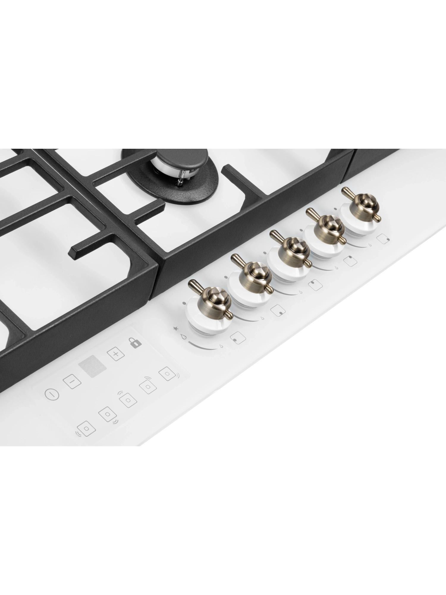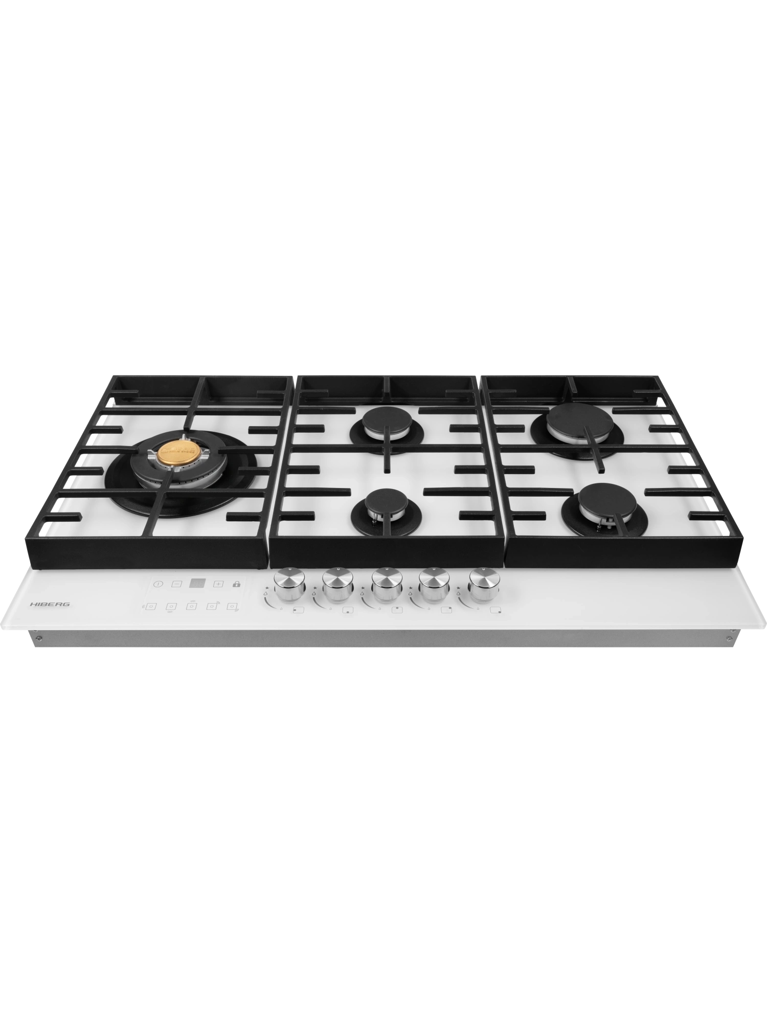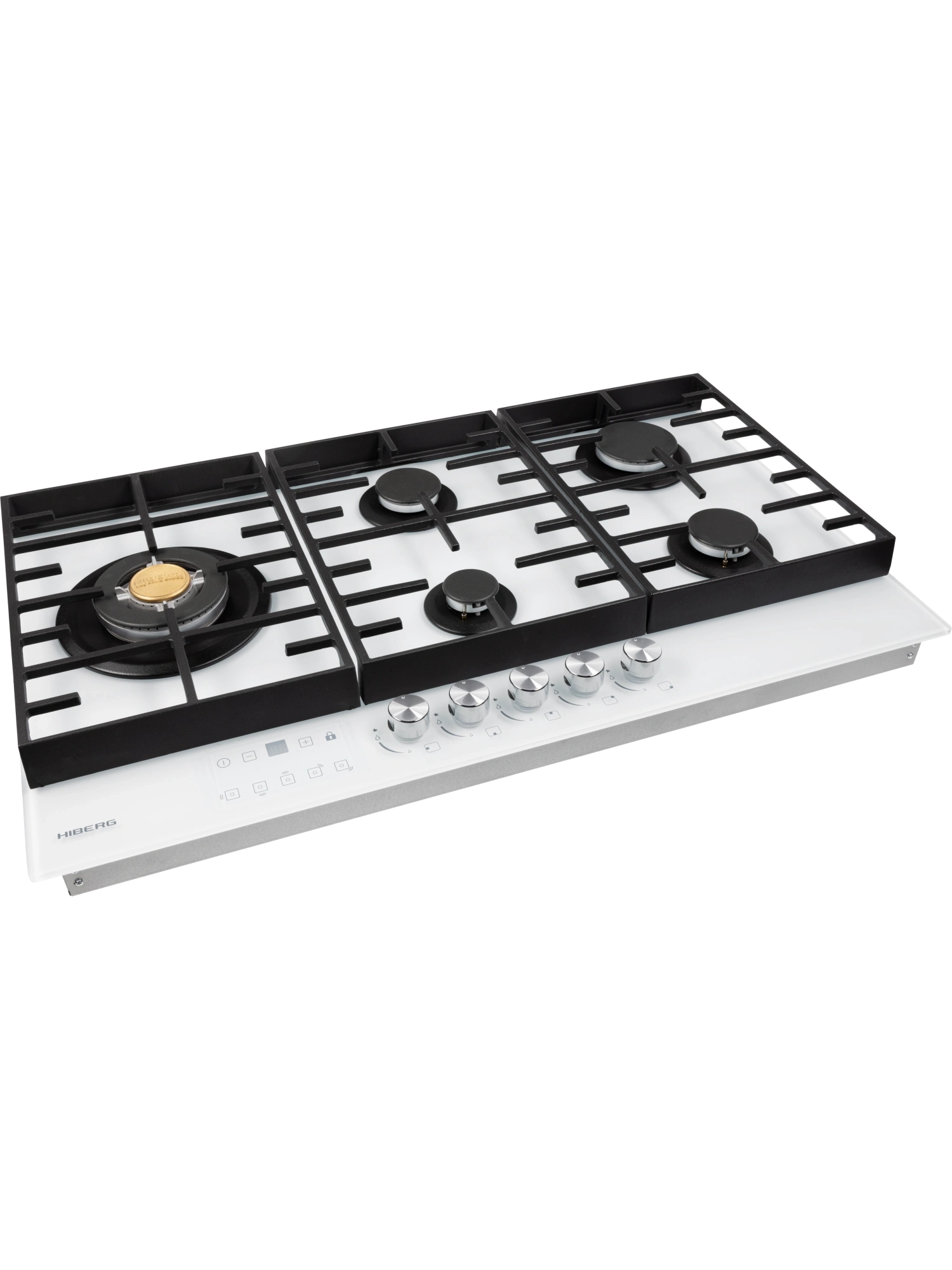 Встраиваемая газовая варочная поверхность HIBERG VM 9255 W – функциональный и элегантный выбор для интерьера большой кухни. Модель шириной 87,4 см и глубиной 51 см оборудована 5 газовыми конфорками с функциями автоматического электророзжига и газ-контроля. Варочная панель HIBERG VM 9255 W – отличный выбор для большой семьи. Закаленное матовое стекло NANO MATT – высокотехнологичное олеофобное покрытие, которое отталкивает воду и жир, облегчает процесс ухода за техникой и сохраняет чистоту рабочего пространства вокруг плиты. На белом матовом стекле варочной панели не остаются отпечатки пальцев. Прочная поверхность с повышенной устойчивостью к царапинам и сколам стойко выдерживает температурные и механические нагрузки. С помощью сенсорного таймера отключения газа можно контролировать время приготовления на нескольких конфорках сразу. Настройки устанавливаются с диапазоном от 1 до 99 минут. По истечении заданного времени конфорка отключается автоматически. Функцию можно выключить досрочно. Конфорки газовой варочной панели HIBERG VM 9255 W отличаются диаметром и мощностью. Самая большая конфорка WOK с тройным рядом пламени и мощностью 3,4 кВт обеспечивает усиленный жар. Ее используют для быстрого и равномерного нагрева дна и стенок конусной посуды. Кроме азиатских блюд, на конфорке WOK можно быстро вскипятить воду, пожарить до румяной корочки мясо и рыбу с добавлением небольшого количества масла, подогреть еду. Функция электророзжига позволяет с легкостью включить конфорку одной рукой. Система газ-контроля автоматически отключает газ у задутой сквозняком или залитой водой горелки. Усиленная добавочными элементами чугунная решетка уменьшает нагрузку на стеклянную поверхность и обеспечивает устойчивость тяжелой посуды на плите. В комплекте – сменный набор металлических ручек. Варочная поверхность HIBERG подключается к розетке через кабель с вилкой (идет в комплекте). Газовый выход расположен в правом углу. Тип подключения - штуцер (внешняя резьба). Гарантия на варочную панель HIBERG – 2 года.