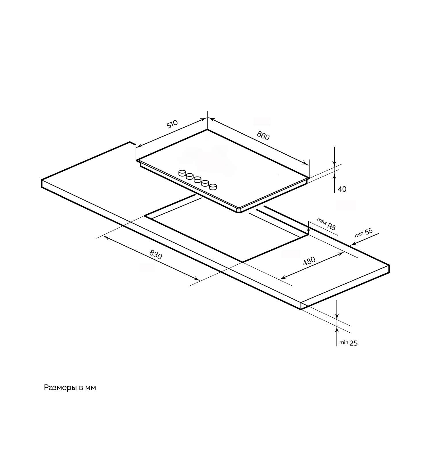 Размер для встраивания (ВхШхГ) 830х480 мм