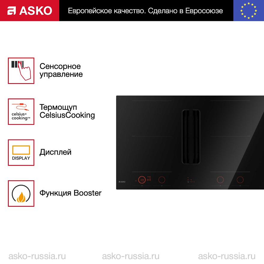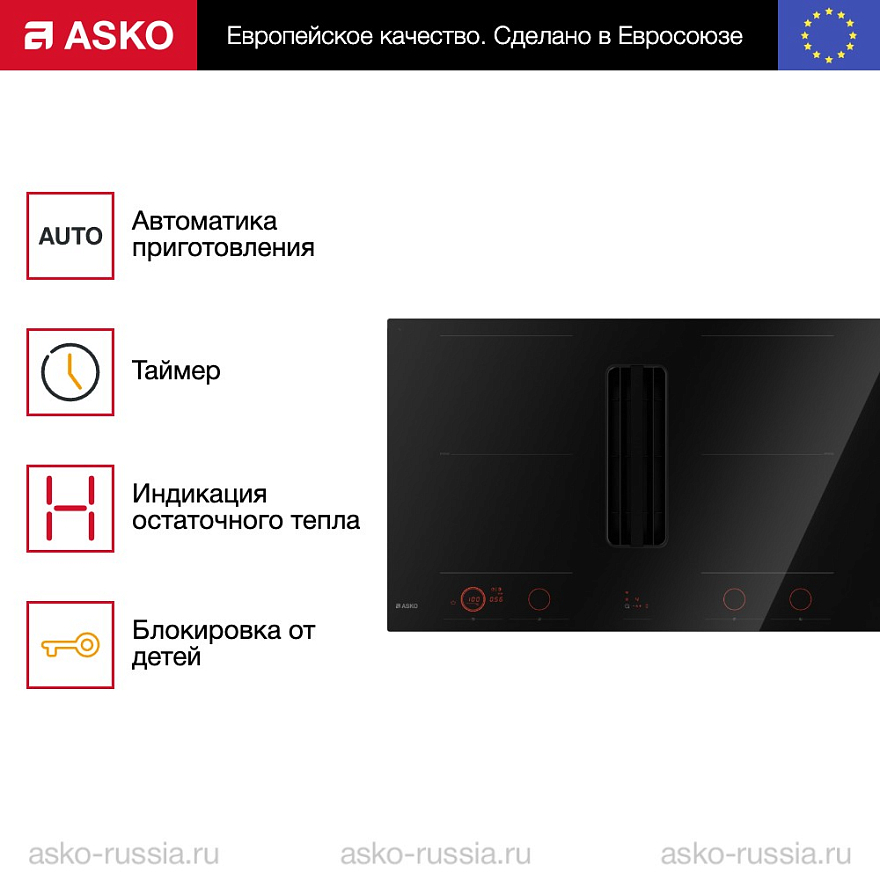 Главная Интернет-магазин Варочные панели Индукционные ASKO Варочная панель со встроенной вытяжкой Asko HIHD854GF