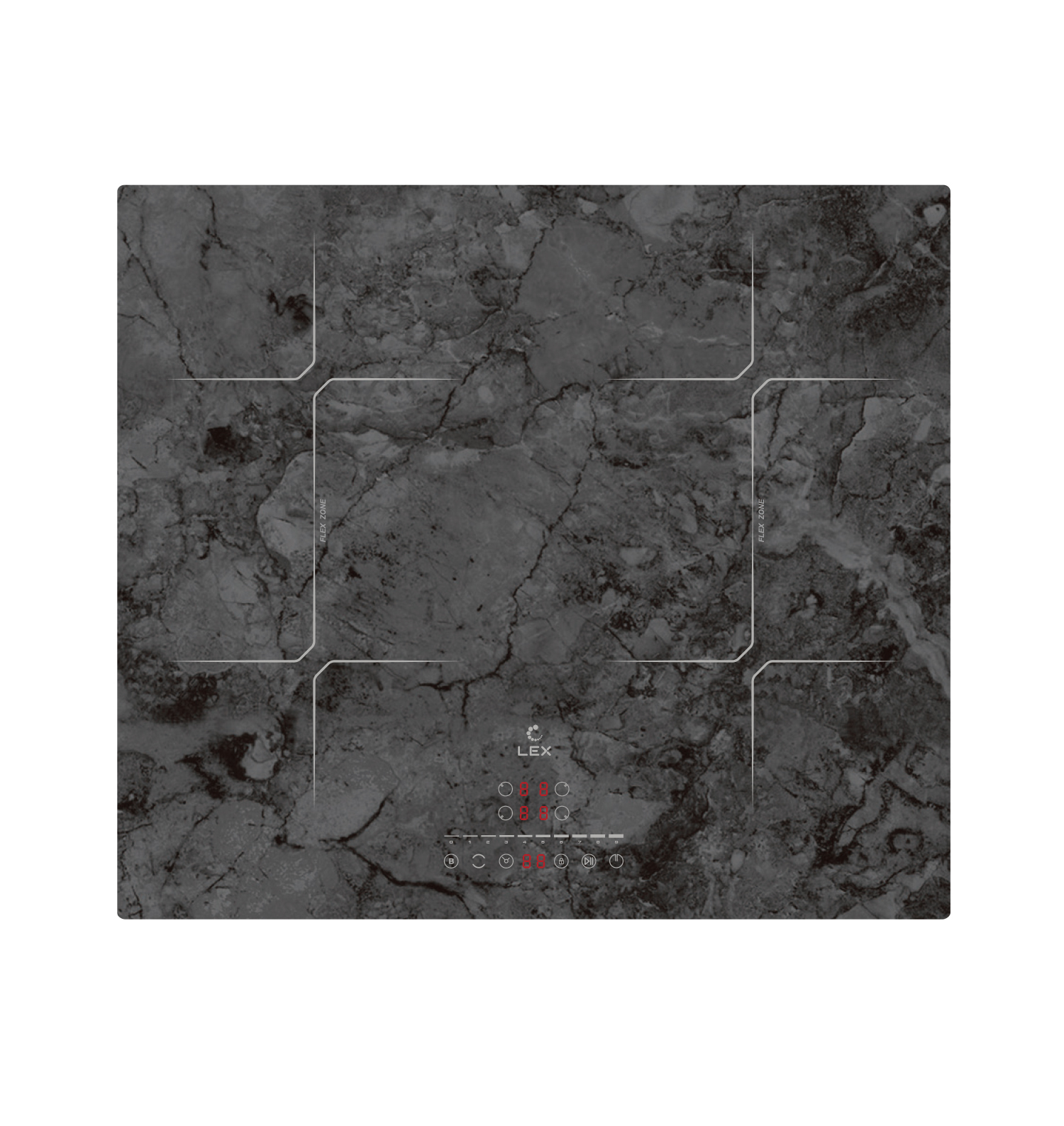 Электрическая индукционная варочная панель LEX EVI 640F DS имеет мраморный дизайн, четыре конфорки, сенсорное управление. Ширина для встраивания 600 мм. Современный индукционный нагревательный элемент демонстрирует высокую скорость нагрева, существенно экономит электроэнергию и сокращает время приготовления блюд. Модель снабжена кнопкой блокировки панели, индикатором остаточного тепла, защитой от перегрева, распознаванием наличия посуды. Наличие функции Boost позволяет ускорить процессы приготовления. Функция StopnGo дает возможность при необходимости одним нажатием приостановить и продолжить работу с сохранением температурных режимов и таймера. Панель имеет FlexZone расширенной конфигурации, которую удобно использовать для посуды нестандартных размера и формы. Корпус LEX EVI 640F DS изготовлен из специального изолирующего полимера толщиной 4 мм, которое избавляет от необходимости заземления. Несмотря на общее мнение, что поверхность в индукционной плите не нагревается, это не совсем так. Она нагревается от самой посуды и нужно быть аккуратными. Сразу после снятия кастрюли или сковороды, поверхность горячая, хотя и практически