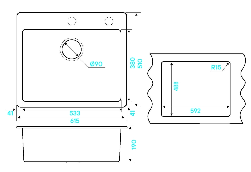 Главная Интернет-магазин Кухонные мойки Врезной монтаж KUCHENSTERN KUCHENSTERN TOPKERAM 60 ,мойка,керамика,керамический черный