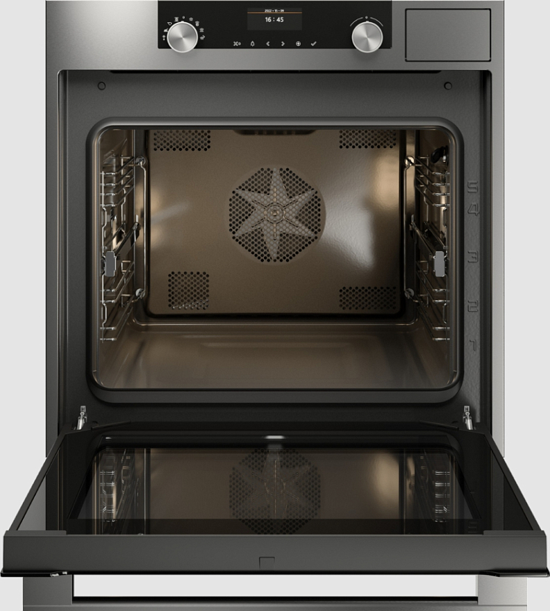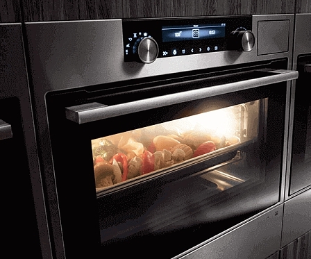 Поворотные переключатели помогают установить нужные параметры, а на дисплее высвечиваются все данные, включая время и пункты электронного меню. Вы можете выбрать один из 11 способов нагрева для приготовления пищи по своим рецептам или одну 132 автоматических программ с предустановленными настройками для самых разнообразных блюд. Также с его помощью вы можете разморозить и разогреть пищу, а также — слегка подогреть посуду перед подачей на стол. Режим «Су-вид» придаст идеальную сочность мясу и рыбе. При его использовании продукты не подгорят, не пережарятся, приобретут насыщенный вкус и аромат.