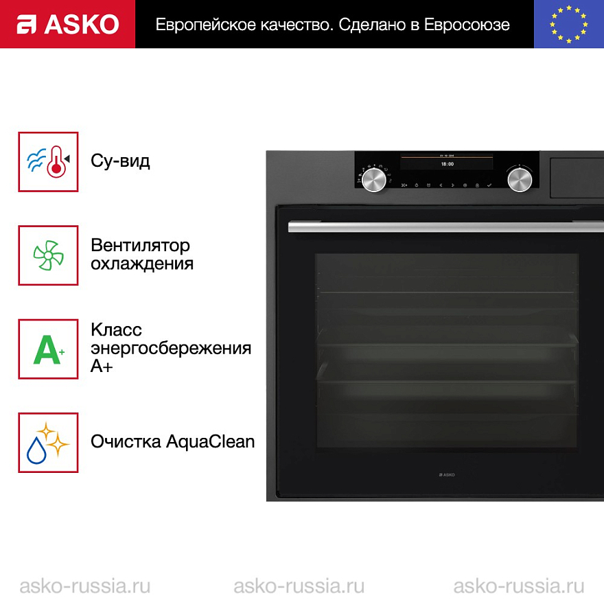 Духовой шкаф Asko совмещает в себе функцию традиционной духовки, а также пароварки, что позволяет готовить разнообразные и технически сложные блюда. Например, в таком приборе есть функция су-вид. Блюдо помещают в вакуумную упаковку и откачивают воздух. На него воздействуют равномерной подачей пара и низкой температурой в течение длительного периода времени. Благодаря этому раскрывается вкус и аромат продуктов, а сама пища получается нежной и сочной.