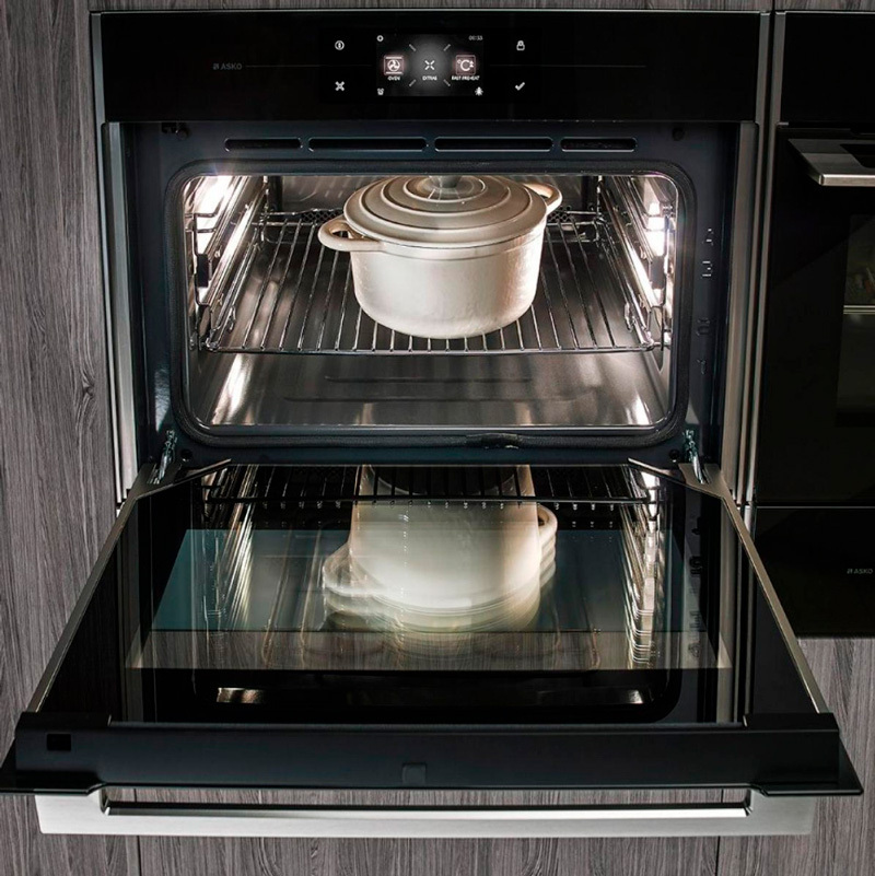 Гриль большой площади с вентилятором нужен для приготовления больших кусков мяса или рыбы, обеспечивая равномерное прогревание и придавая блюду замечательный вкус и текстуру. Благодаря таймеру вы сможете легко контролировать время работы, а режим подогрева StayWarm идеально подходит для поддержания готовых блюд в оптимальной температуре до подачи на стол. Пиролитическая очистка в духовом шкафу Аско OP8678G — это инновационная технология, которая позволяет вам забыть о мучительной уборке. В процессе пиролиза высокие температуры превращают остатки жира и пищи в золу, которую легко удалить, оставив внутреннюю поверхность камеры абсолютно чистой. А благодаря охлаждаемой дверце, защите от детей и плавному открывающему механизму, этот прибор сочетает в себе безопасность и практичность.