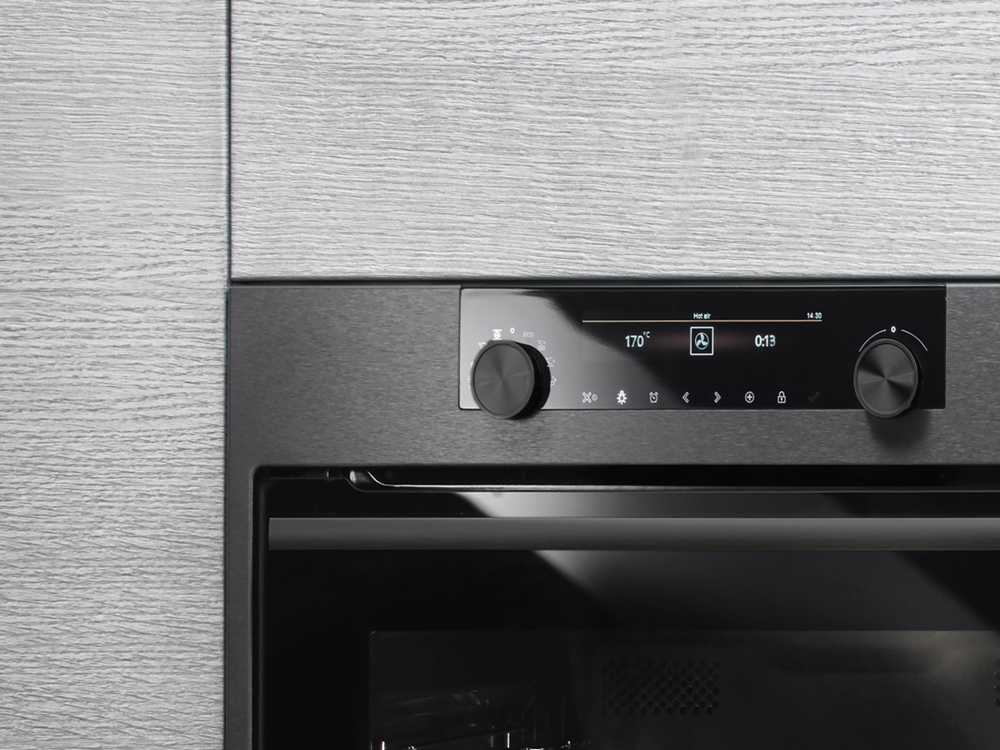 Модель оборудована интеллектуальным сенсорным TFT-дисплеем. Такая система управления эффективна и требует минимального вмешательства пользователя. Дисплей включает полную индикацию хода текущих программ, часы, таймер и др.