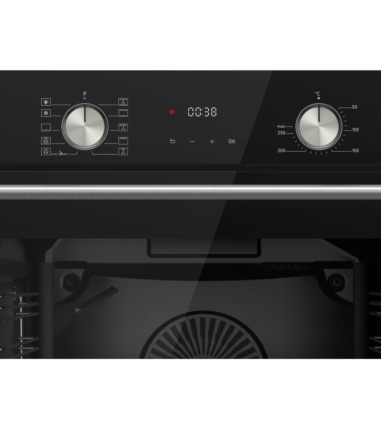‒ 10 программ, цифровой таймер, эмаль легкой очистки, конвекция, гриль, утапливаемые ручки, 1 стандартный противень+глубокий противень, решетка для гриля, 2 стекла low-e, наружное стекло ShottCeran, задняя стенка - каталитическая+гидролизная очистка, активное освещение, телескопические направляющие