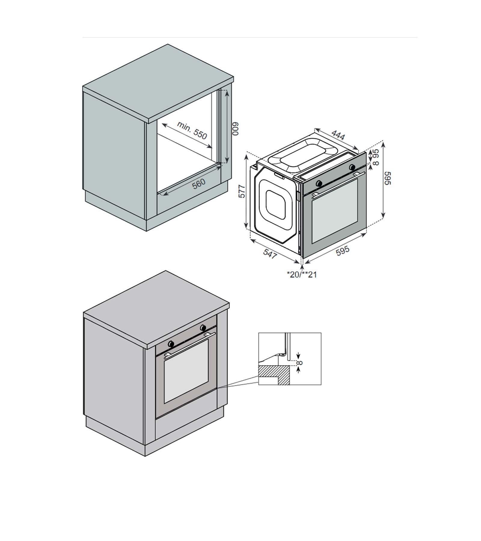 ‒ 8 программ, механический таймер, эмаль легкой очистки, конвекция, гриль, утапливаемые ручки, 1 стандартный противень, решетка для гриля, 2 стекла low-e, наружное стекло ShottCeran, гидролизная очистка