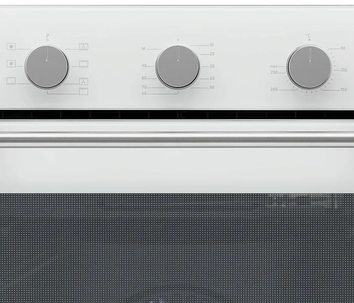 Управление осуществляется с помощью поворотных утапливаемых элементов и механического программатора. Всего предусмотрено 6 режимов работы, включая нижний и верхний нагрев, а также нагрев с конвекцией. Такой выбор режимов позволяет настроить работу в зависимости от блюда и его рецептуры.