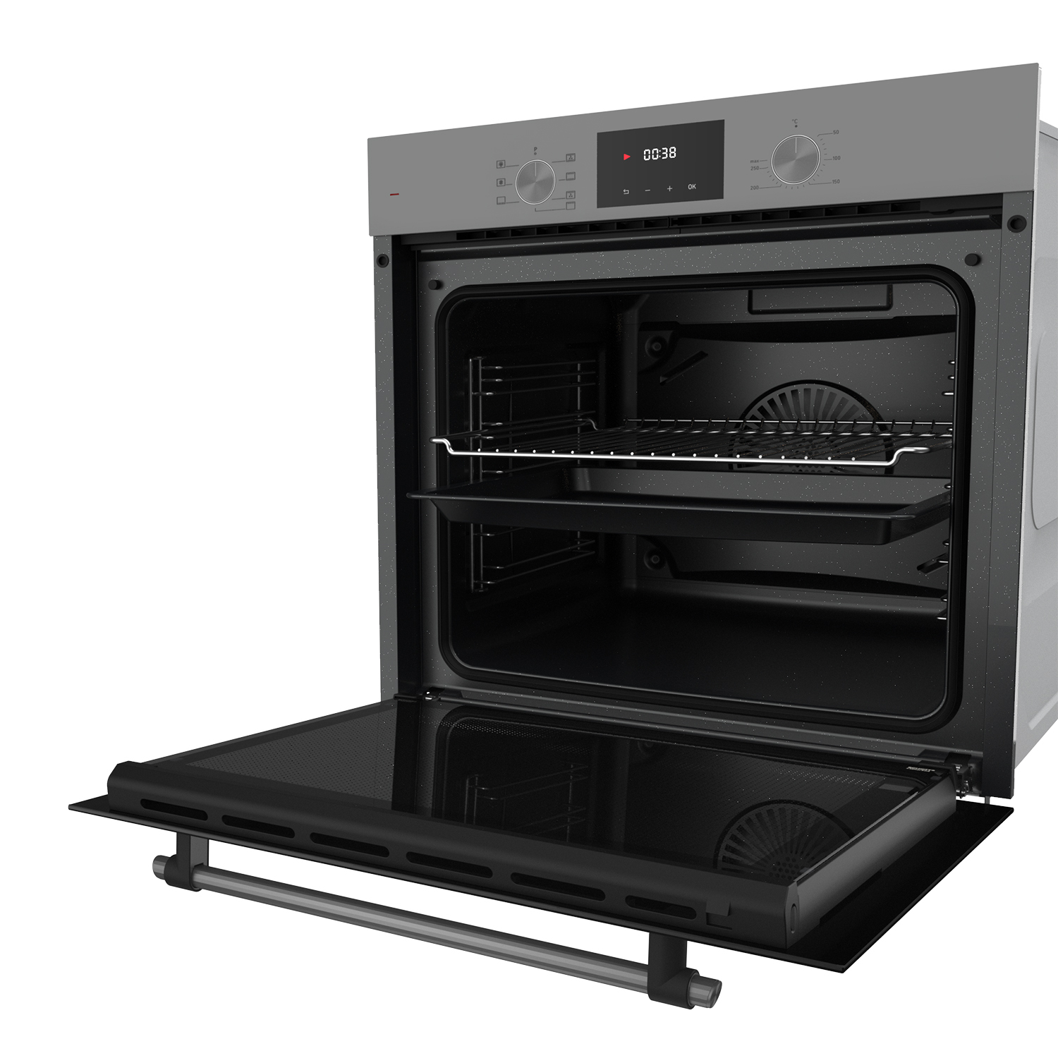 Удобный LED-дисплей и утапливаемые ручки обеспечивают точный контроль за каждым этапом готовки. Сенсорное управление позволяет легко переключаться между режимами и контролировать процесс.