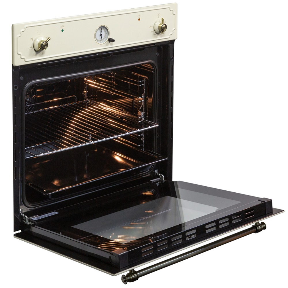 Электрический духовой шкаф Zigmund & Shtain E 134 X с камерой 67 л входит в серию Country. Модель нагревается до 250°C, предусмотрено пять рабочих режимов, в том числе гриль и конвекция. Система управления — механическая, настройки устанавливаются с помощью поворотных ручек, которые находятся на фронтальной панели. В дверце, открывающейся вниз, установлено двойное стекло. Освещение обеспечивает лампа накаливания. Покрытие внутренних стенок — эмаль легкой очистки. К устройству прилагаются металлическая решетка и плоский противень. Размеры ниши для встраивания — 589х560х550 мм.