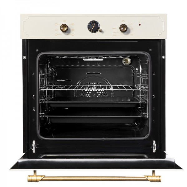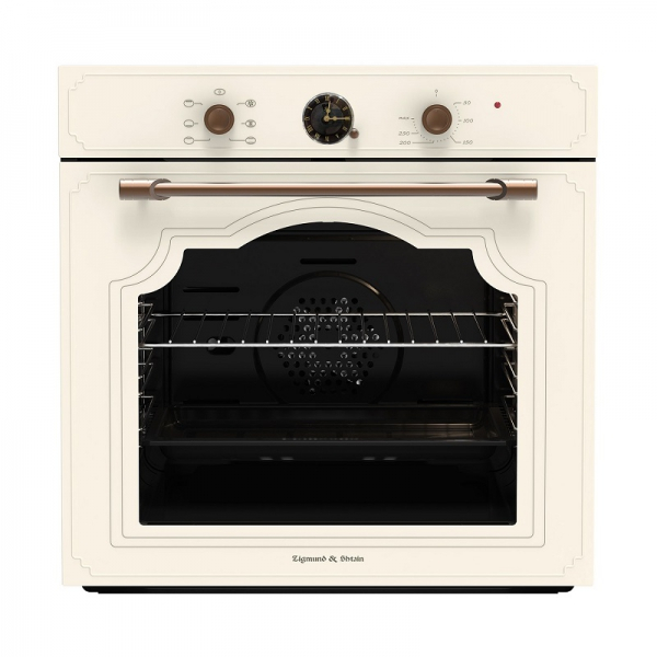 Электрический духовой шкаф Zigmund & Shtain E 138 X с камерой 72 л входит в серию Country. Модель нагревается до 250°C, предусмотрено шесть рабочих режимов, в том числе гриль и конвекция. Система управления — механическая, настройки устанавливаются с помощью поворотных ручек, которые находятся на фронтальной панели. В дверце, открывающейся вниз, установлено двойное стекло. Освещение обеспечивает лампа накаливания. Покрытие внутренних стенок — эмаль легкой очистки. К устройству прилагаются металлическая решетка и два противня, плоский и глубокий. Размеры ниши для встраивания — 600х560х550 мм.