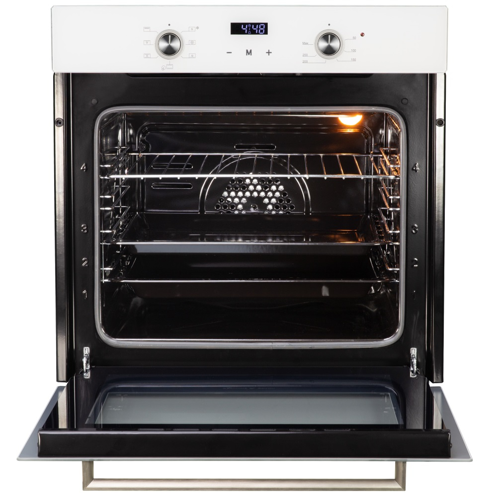 Электрическая духовка Zigmund Shtain E 153 W отлично подойдет для современной кухни. ведь ее фасад выполнен в белом цвете. Металлическая ручка дверцы. Утапливаемые переключатели и механический программатором сделают более комфортным уход за панелью управления, сам программатор даст Вам возможность установить момент включения, время работы с последующим отключением с выводом информации на цифровой дисплей. Общие параметры: Класс энергопотребления А, Тангенциальное охлаждение, Хромированные боковые направляющие, Два съемных стекла дверцы, Панорамное внутреннее стекло Smart Eye, Утапливаемые ручки управления, Сенсорный дисплей, Холодный фронт, Механический таймер с отключением, Металлическая ручка дверцы, Эмаль легкой очистки, Освещение. Комплектация: 1 решетка, 1 противень, 1 глубокий противень Функции: Задний кольцевой нагреватель с конвекцией, Верхний и нижний нагреватель, Верхний и нижний нагреватель с конвекцией, Верхний нагреватель с конвекцией, Нижний нагреватель с конвекцией, Разморозка, Гриль.