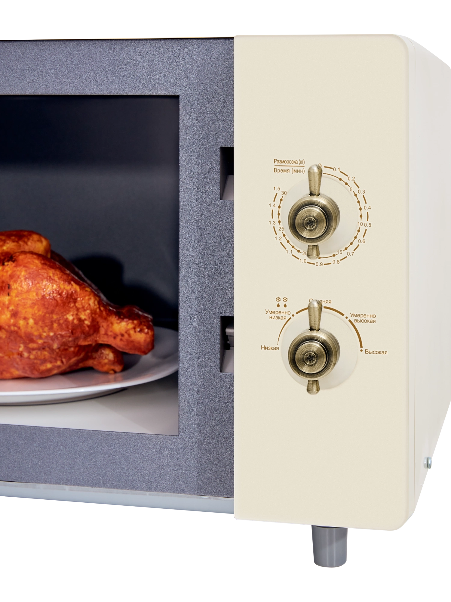 Инверторная микроволновая печь HIBERG i-VM 4582 YR объемом 25 литров оснащена стеклокерамическим дном без поворотного стола. Микроволновая печь выполнена в ретродизайне с фасадом из закаленного стекла бежевого цвета, поэтому станет органичным дополнением интерьеров кухонь в классическом стиле, кантри или прованс. Удобная металлическая ручка и стилизованные ручки регуляторов цвета состаренной латуни выгодно подчеркивают аутентичность модели. Инновационная особенность микроволновой печи — инверторная технология работы, которая обеспечивает многоуровневое управление мощностью микроволн и равномерное распределение тепла по всему пространству камеры. За счет этого блюдо прогревается быстро, со всех сторон, сохраняя аппетитный вид, полезные и вкусовые качества. Благодаря инверторной технологии можно не только разогревать пищу, но и размораживать, готовить продукты. Такие микроволновые печи имеют высокий уровень энергоэффективности и отличаются долгим сроком службы. Еще одно уникальное преимущество модели — стеклокерамическое дно без поворотного стола. Оно простое в уходе и безопасно в использовании. На гладкую поверхность можно ставить посуду любой формы и размеров, а также разогревать несколько блюд одновременно. Камера с эмалированным покрытием внутри устойчиво к механическим повреждениям. Объем СВЧ-печи в 25 литров и мощность микроволн 900 Вт позволяют быстро и легко разморозить, разогреть или приготовить любое блюдо. С помощью механического управления можно легко отрегулировать мощность и время приготовления продуктов, а также выбрать время разморозки. Гарантия на микроволновую печь HIBERG – 2 года.