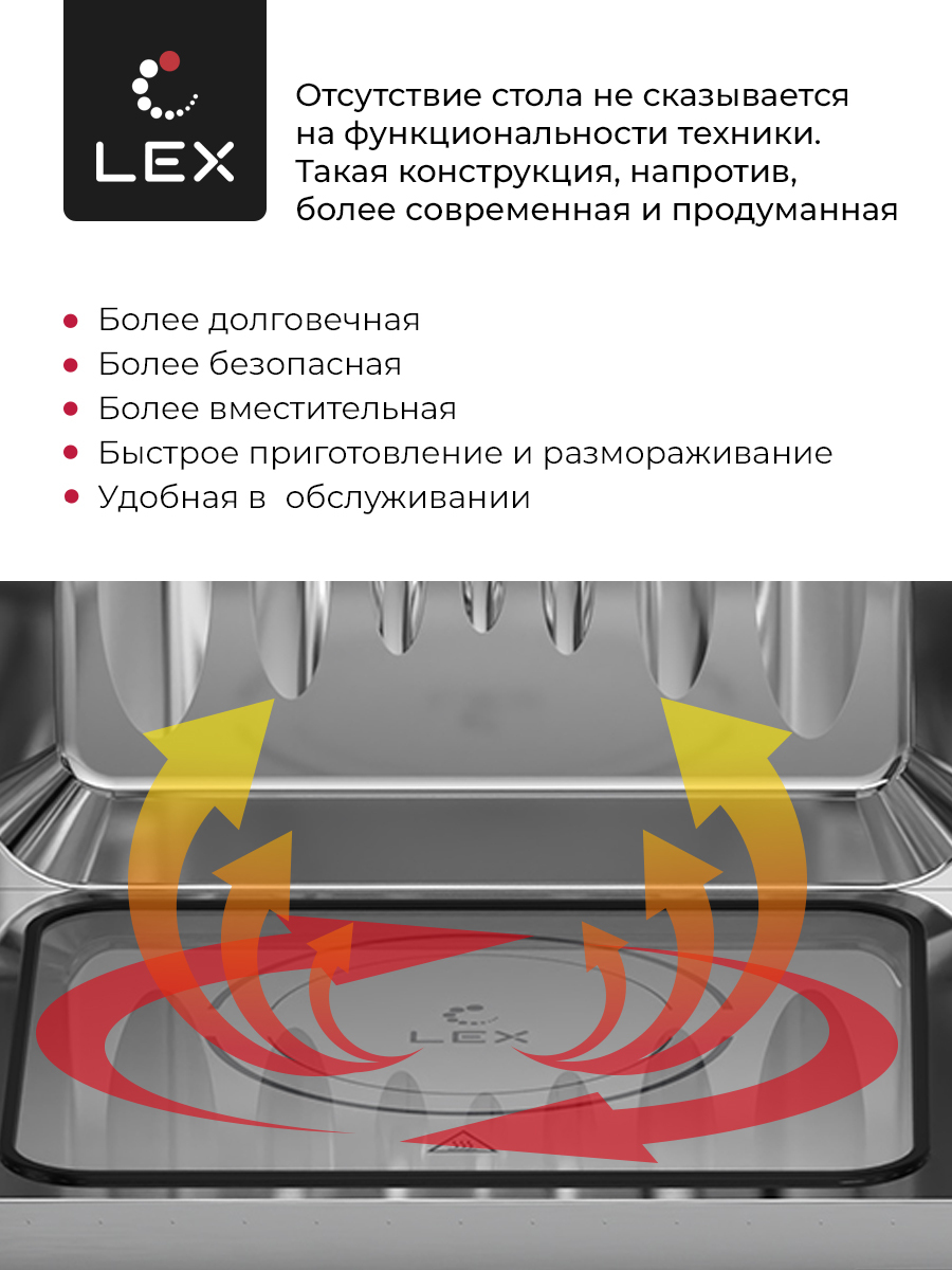 Кроме этого, данная особенность моделей этих серий обеспечивает более быстрое приготовление и размораживание и при этом гораздо более удобна и проста в обслуживании камеры для приготовления. А срок службы такой конструкции более долговечен.