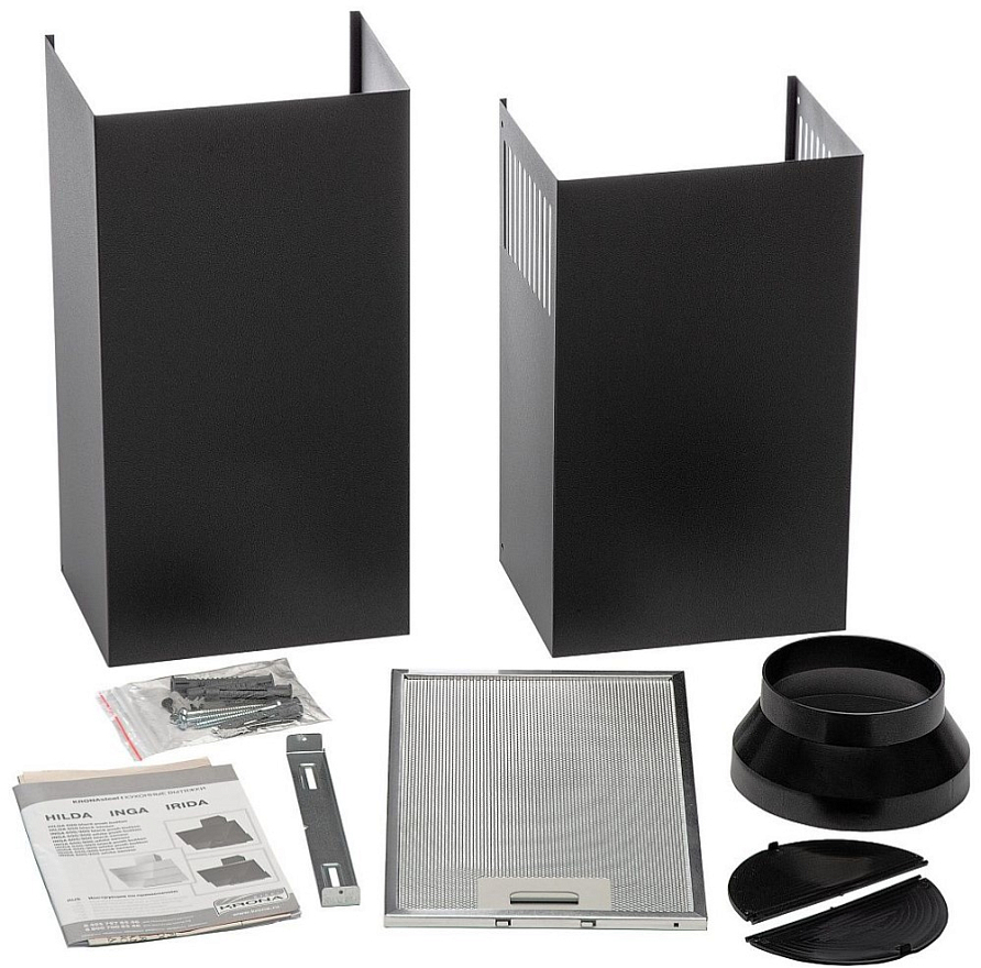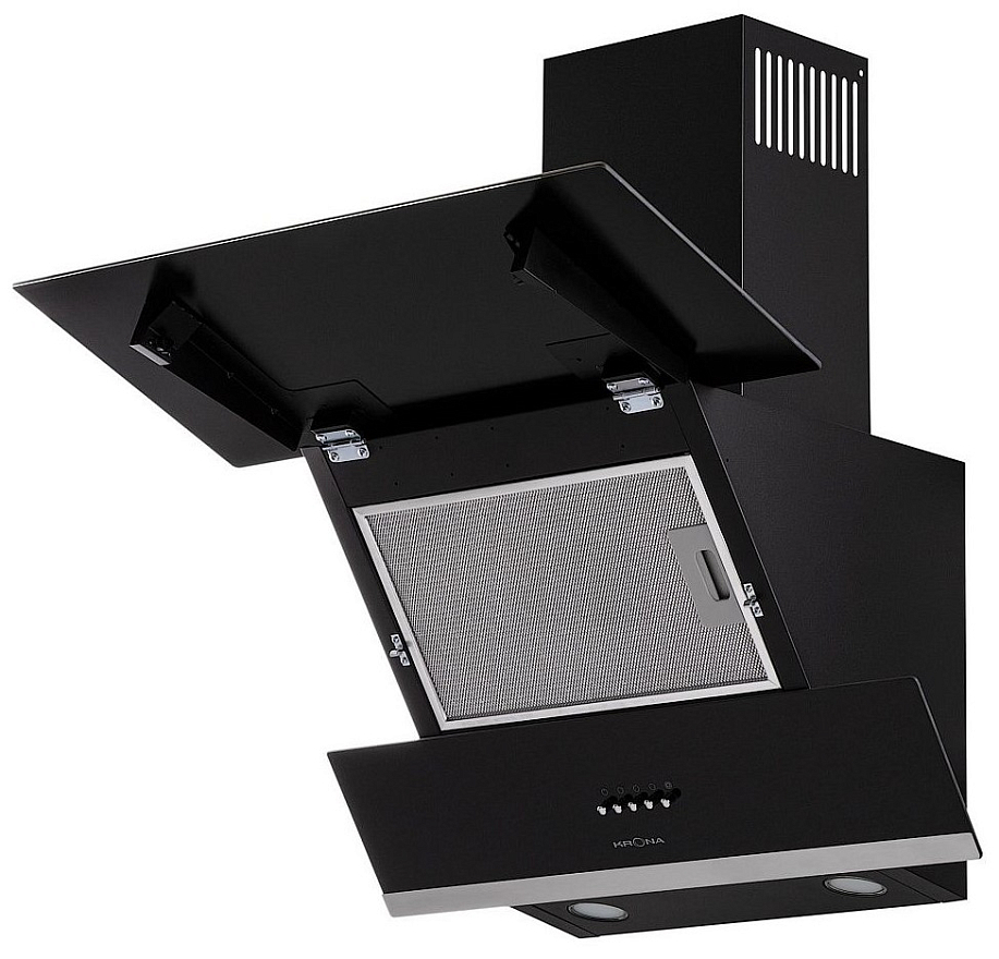 Если вы высоко цените эффектный внешний вид бытовой техники, то данная модель точно для вас. Благодаря стильному и современному дизайну, использованию черного глянцевого цвета в сочетании с серебряными деталями, вытяжка смотрится просто бесподобно, радует глаз своим внешним видом. Габариты устройства следующие: 108 сантиметров в высоту, 60 — в ширину и 39 — в глубину. Как видно, размеры вполне внушительные, поэтому это отличный выбор именно для больших кухонных помещений. Производительность составляет 750 м3/ч, уровень шума при этом равен всего лишь 41 дБ, что является отличным показателем.