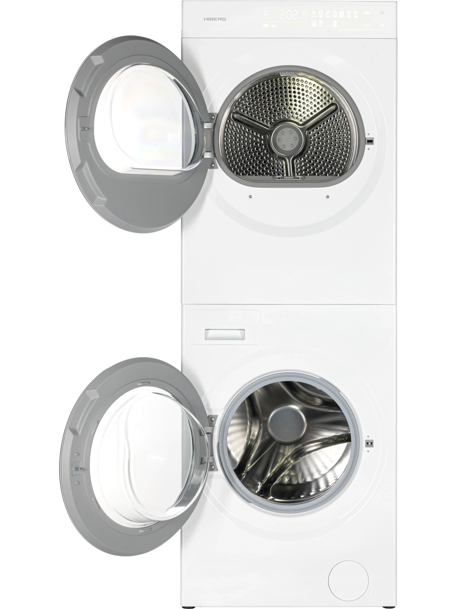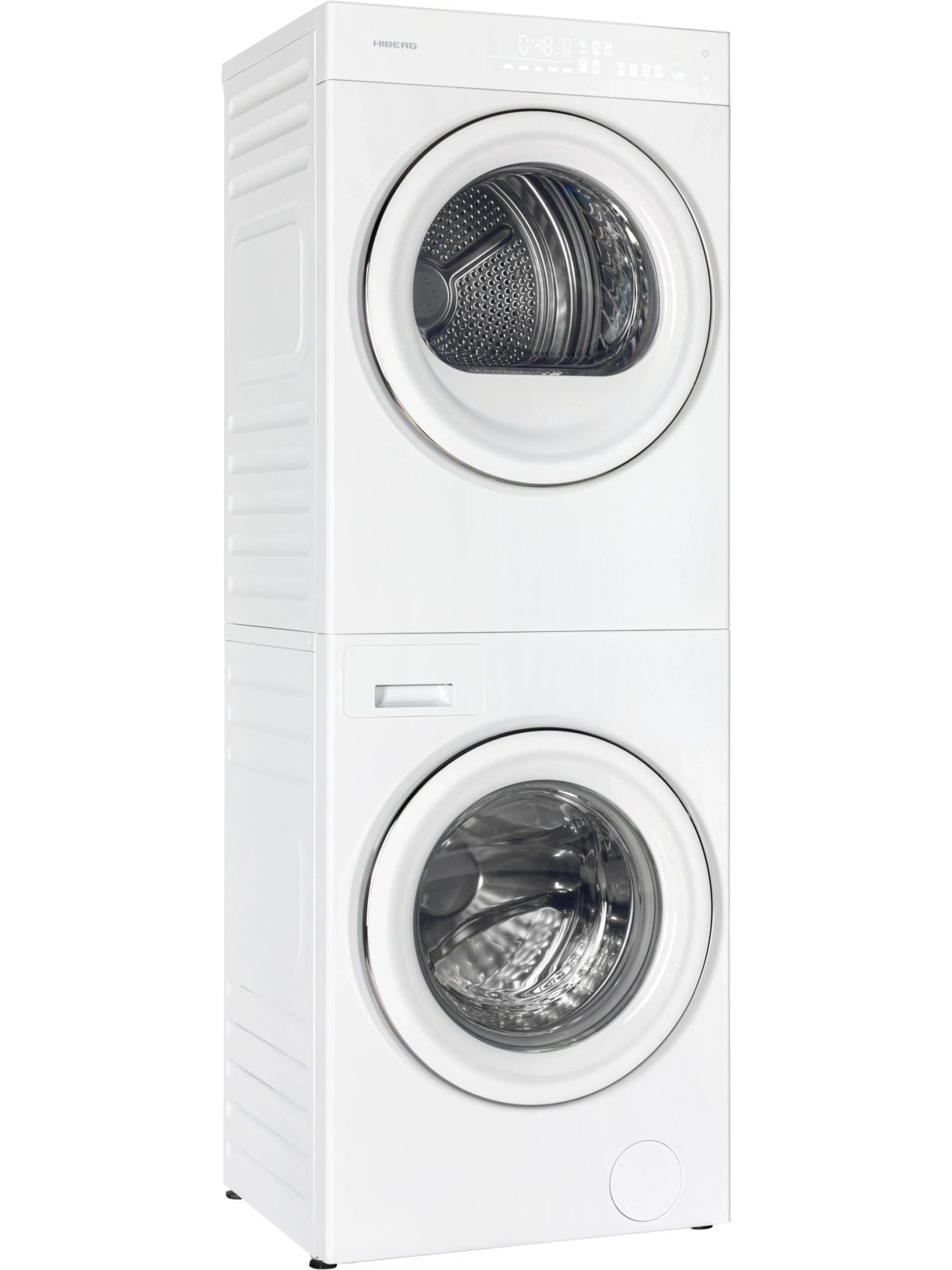 Монокомплект стиральной и сушильной машин HIBERG TURELLE i-10 W с раздельными барабанами – представитель семейства многофункциональной бытовой техники для качественного ухода за одеждой в домашних условиях. Модель из двух зависимых друг от друга инверторных устройств с единой панелью управления позволит эффективно организовать пространство ванной комнаты, выполняя все этапы - от замачивания до легкой глажки вещей. Премиальная стирально-сушильная машина станет достойным украшением изысканных дизайнерских интерьеров. Два инверторных двигателя и тепловой насос устройств обусловливают экономичный расход электроэнергии и позволяют уменьшить уровень шума во время стирки до 62 дБ, а в режиме отжима со скоростью 1200 оборотов в минуту – до 72 дБ. Монокомплект стиральной и сушильной машин белого цвета с белыми дверцами люков выполнен в современном дизайне. В верхней части устройства расположена интуитивно понятная сенсорная панель управления на цветном LED-дисплее с приглушенной подсветкой Moon light. Индикация подскажет тип стирки, температуру, показатели сушки и полоскания, скорость, время, отложенный старт, защиту от детей, код ошибки, старт или паузу и дополнительные опции. Барабаны отделений выполнены из нержавеющей стали. Загрузка стиральной и сушильной машин - по 10,5 килограммов сухого и влажного белья соответственно. Для оптимального результата рекомендована неполная загрузка. Угол открытия в 135° обеспечивает полное раскрытие каждой дверцы и свободный доступ к одежде и домашнему текстилю. ПРОГРАММЫ И ФУНКЦИИ Функция памяти сохранит последние установленные настройки стирально-сушильной машины в случае внезапного отключения электроэнергии. Отсрочка старта поможет задать удобное для пользователя время окончания стирки и сушки, включая продолжительность цикла работы. Максимальное время отсрочки – 24 часа. Функция защиты от детей блокирует дверцы и панель управления во время работы каждой из машин. Подсветка барабанов делает загрузку и выгрузку белья легкой и удобной, позволяя проверить, все ли вещи были вынуты по окончании цикла. Стиральная машина Стиральное отделение выполняет работу в режимах: «Смешанная», «Быстрая», «Пуховик», «Постельное белье», «Антибактериальная», «Очистка барабана», «Отжим», «Полоскание + отжим». У каждой программы предусмотрены дополнительные функции. Датчик контроля пенообразования включает насос при превышении нормы и сохраняет качество полоскания на должном уровне. Контроль дисбаланса позволяет регулировать распределение белья в процессе отжима, что понижает уровень шума и вибрацию машины. Дополнительное полоскание позволит скорректировать чистоту белья в случае остатков моющего средства на вещах. Возможность дозагрузки белья избавит от необходимости перезапуска стирки. Система «Аквастоп» способна предотвратить непредвиденную протечку в результате внезапных повреждений. Сушильная машина Программы сушки: «Смешанная», «Быстрая», «Пуховик», «Постельное белье», «Воздушная стирка», «Нагрев одежды», «Антибактериальная», «Рубашки», «Время сушки». К каждой из них запрограммирован дополнительный набор функций. Кнопка выбора степени сушки с вариантами «Экстра», «Средняя» и «Сушка под утюг» позволяет выбрать нужную в зависимости от типа ткани. Ширина, глубина и высота стирально-сушильной