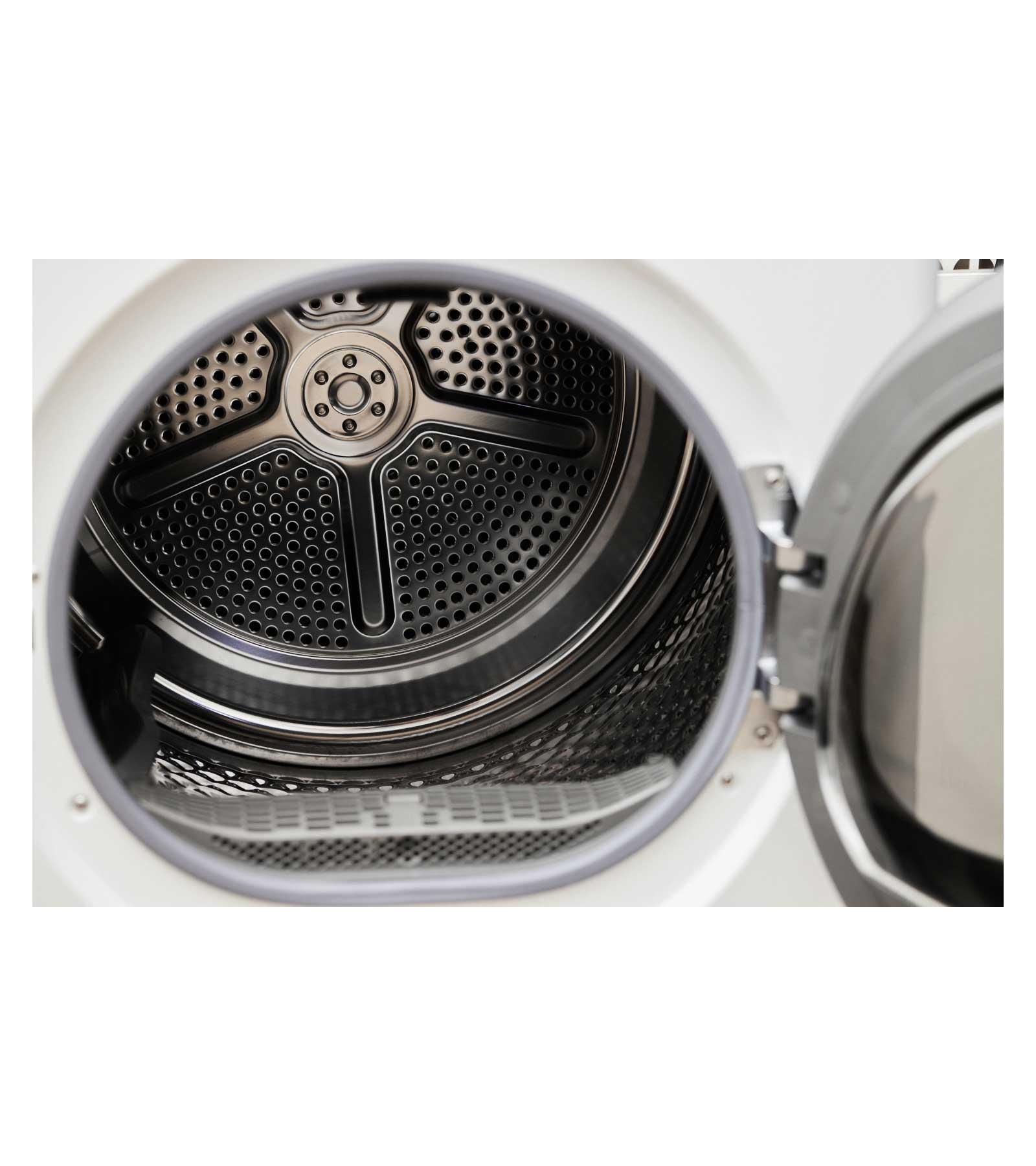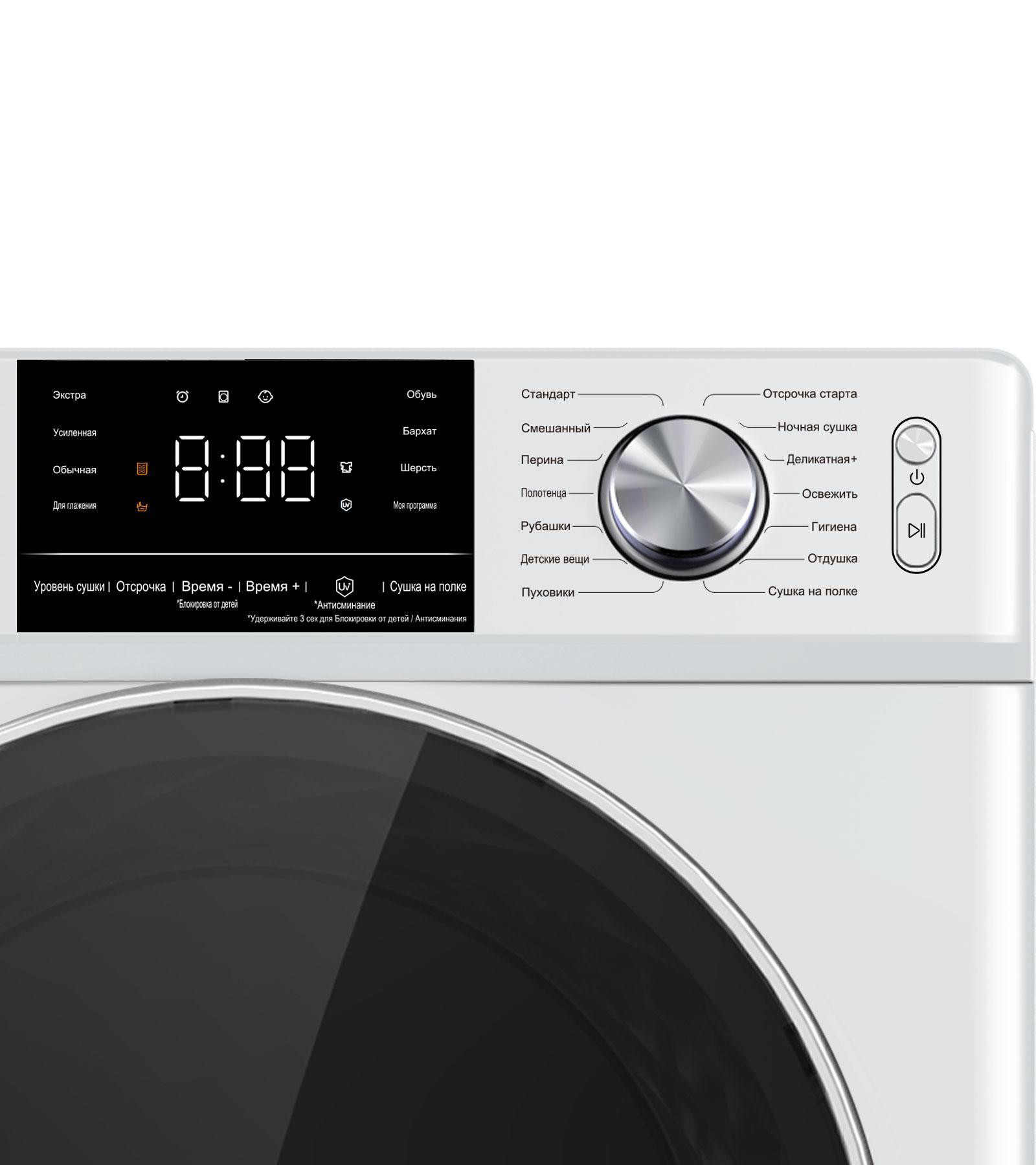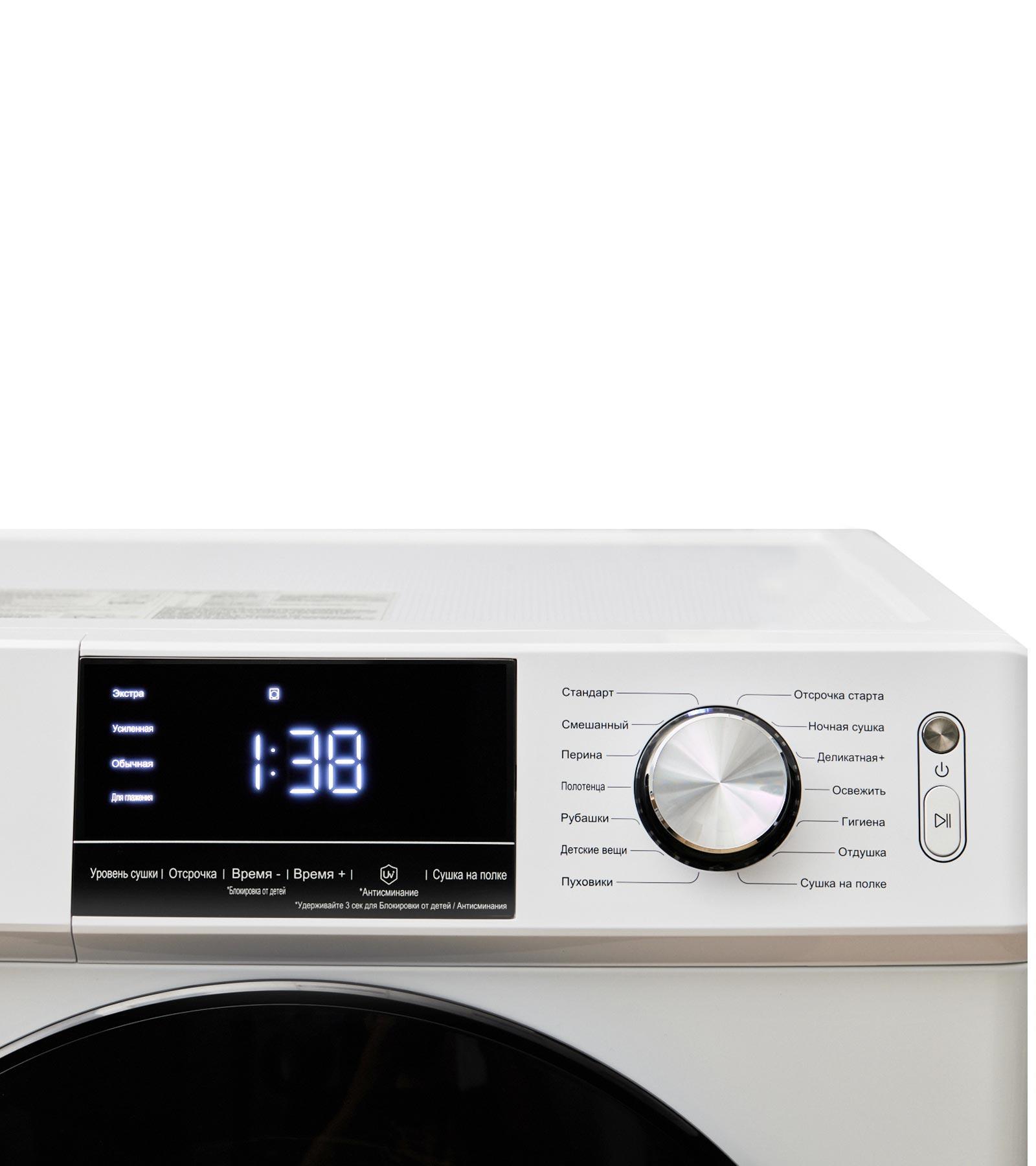 - Материал барабана — нержавеющая сталь. Цвет машинки — белый.